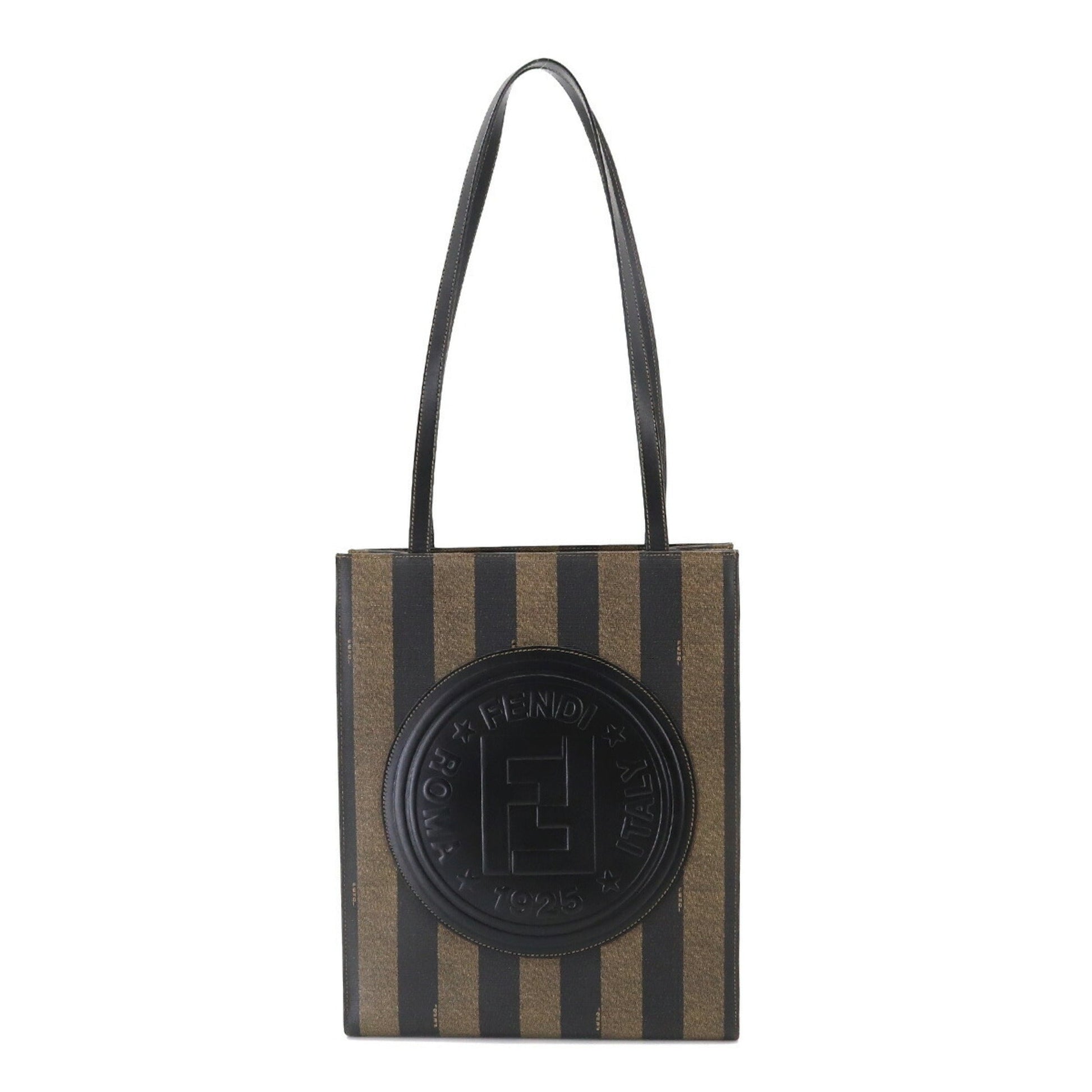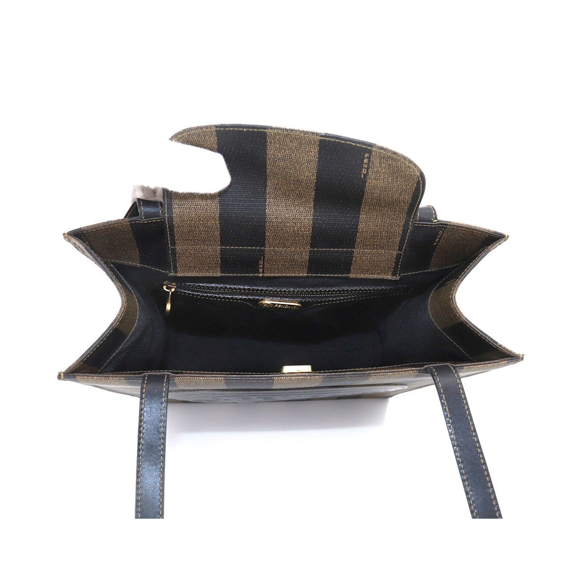 FENDI Pecan Tote Bag PVC Leather Brown Black 258259980068 Gold Hardware