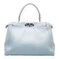 FENDI Peekaboo Handbag Shoulder Bag Light Blue Leather Women's