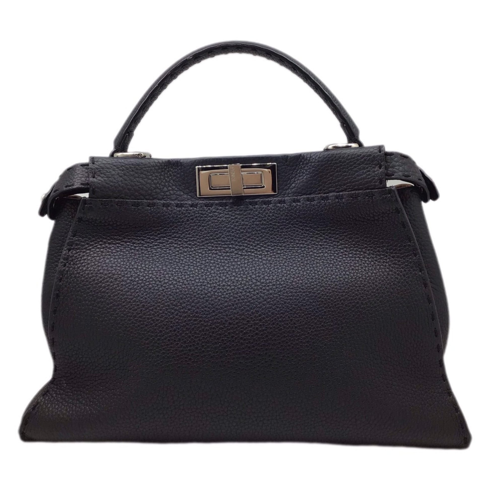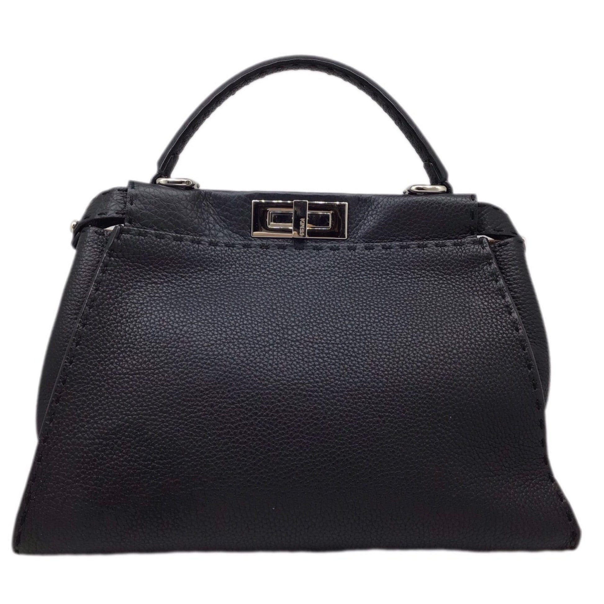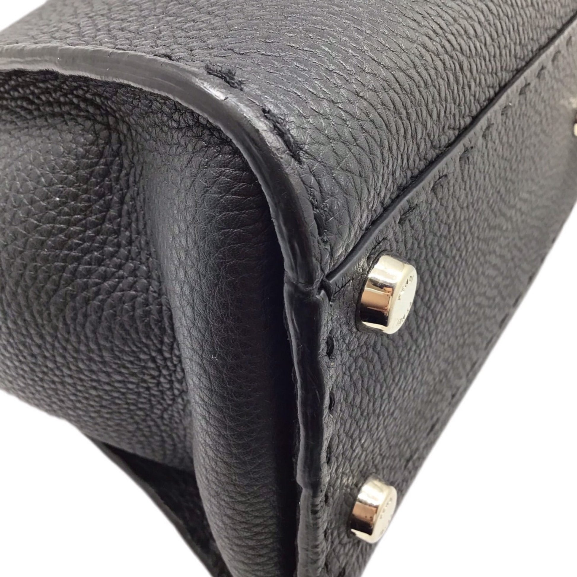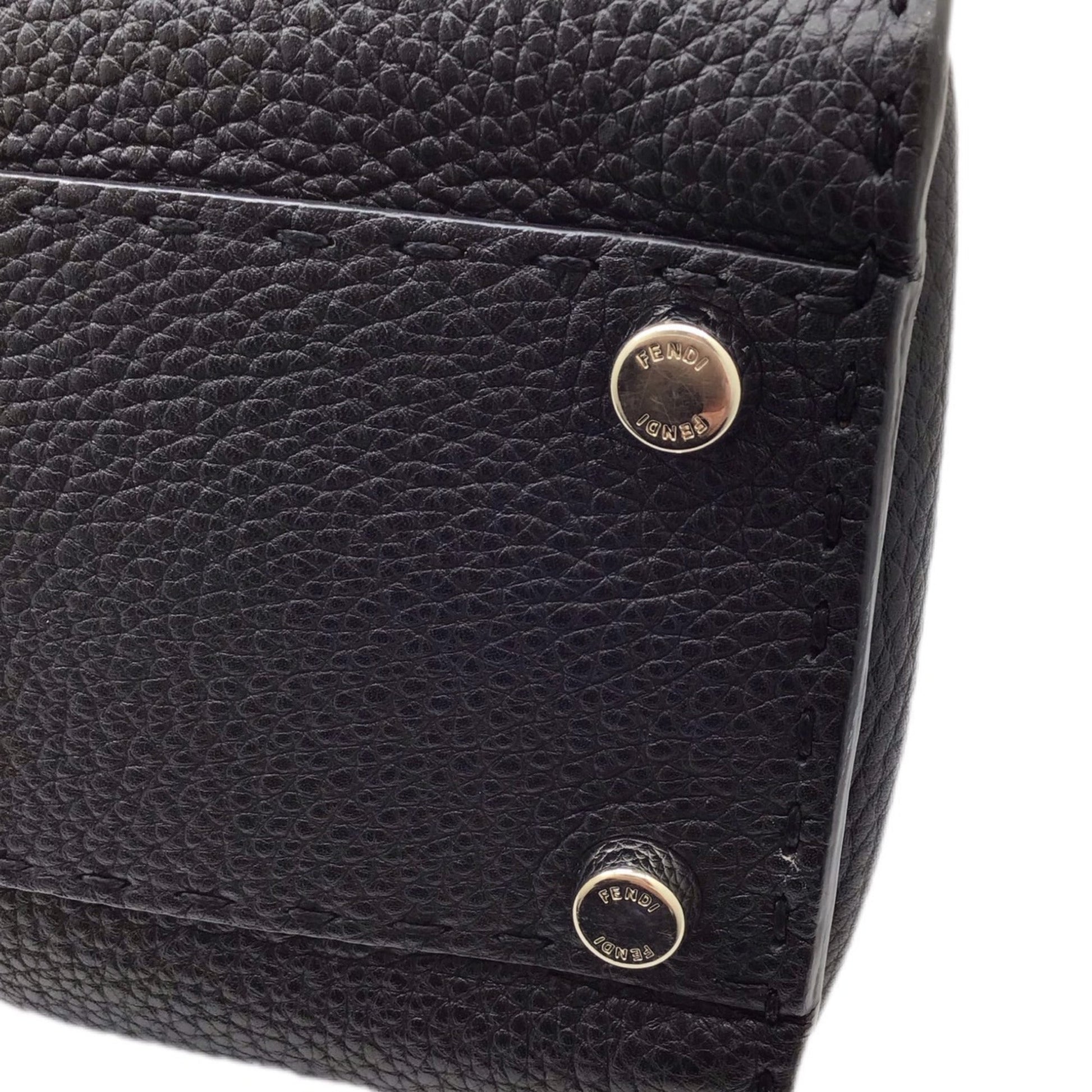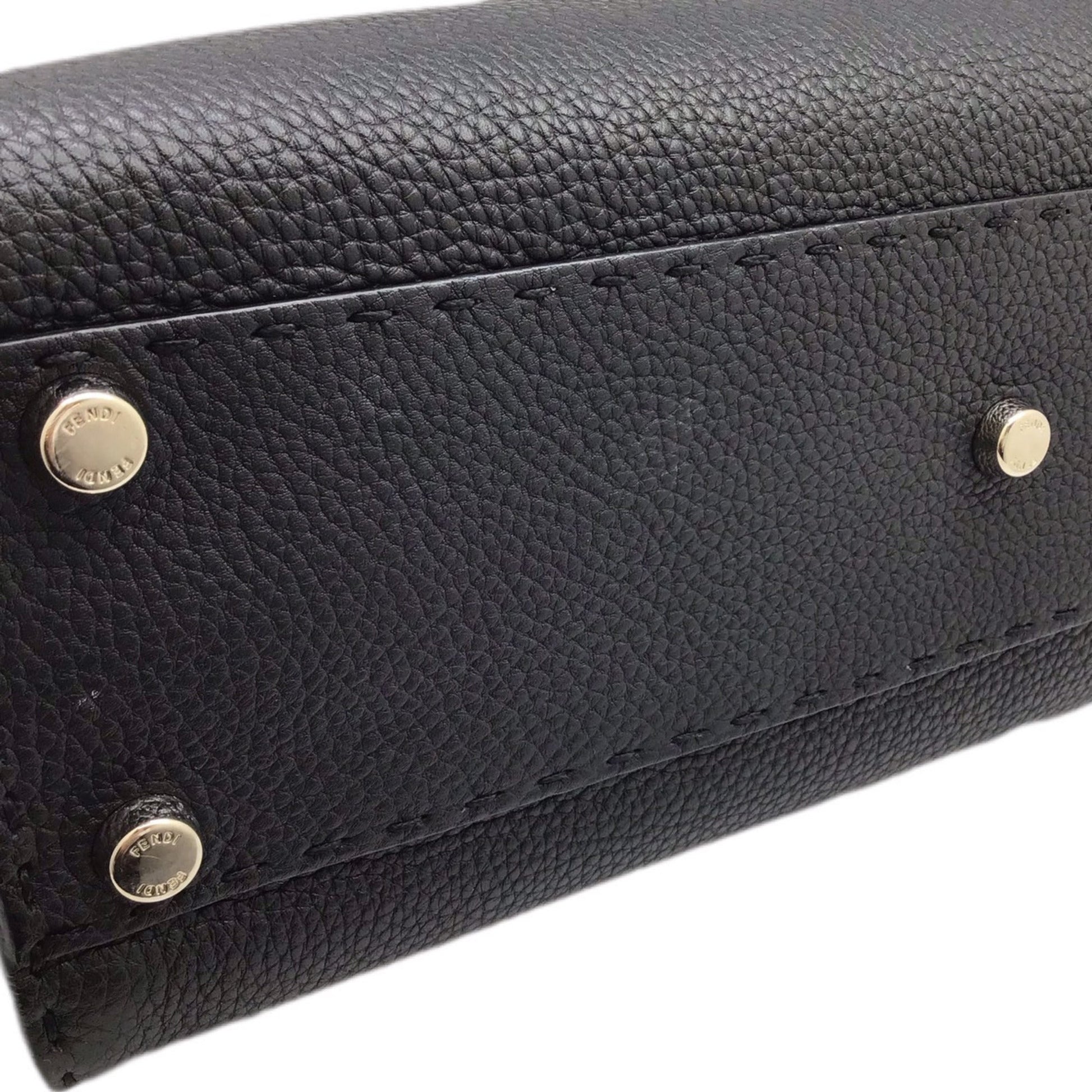 FENDI Peekaboo Selleria 8BN290 Black Bag Leather Handbag Shoulder Cover SV Hardware Women's Men's Unisex