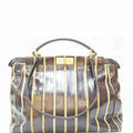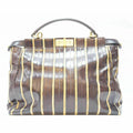 Fendi Peekaboo Striped Brown Eel Skin Leather Shoulder Bag