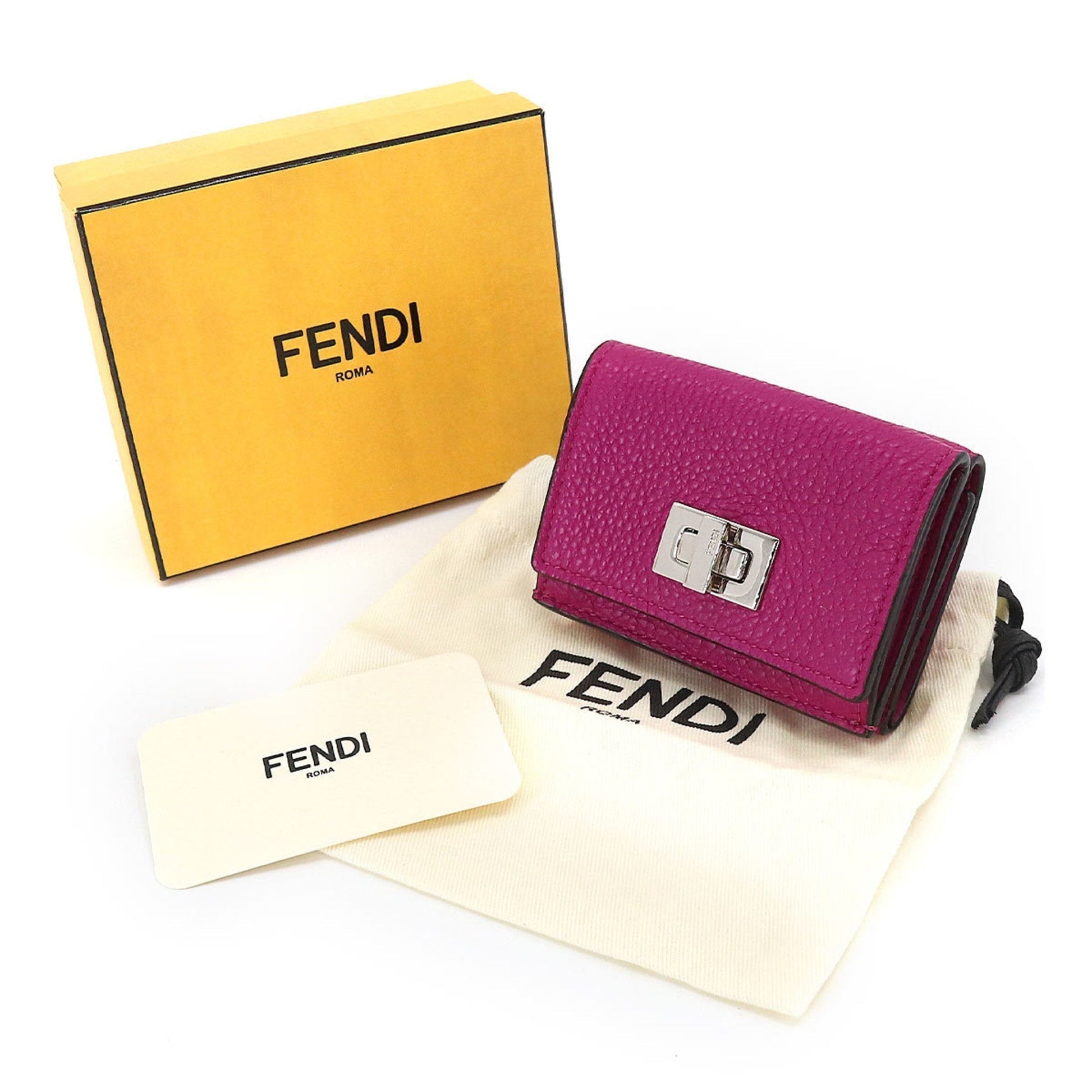 Fendi Peekaboo Trifold Wallet Leather Magenta 8M0426 Silver Metal Fittings