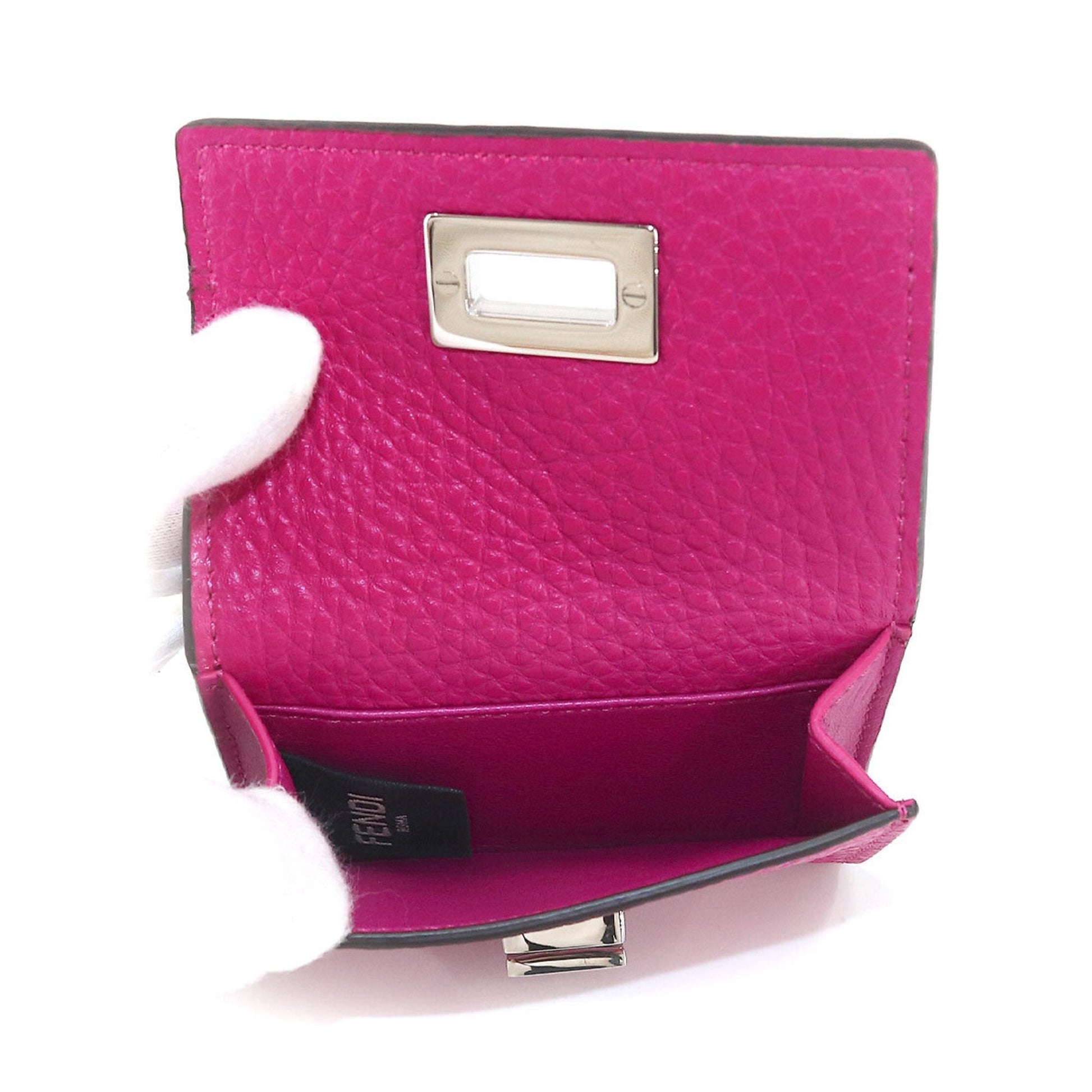 FENDI Peekaboo Trifold Wallet Leather Magenta 8M0426 Silver Metal Fittings