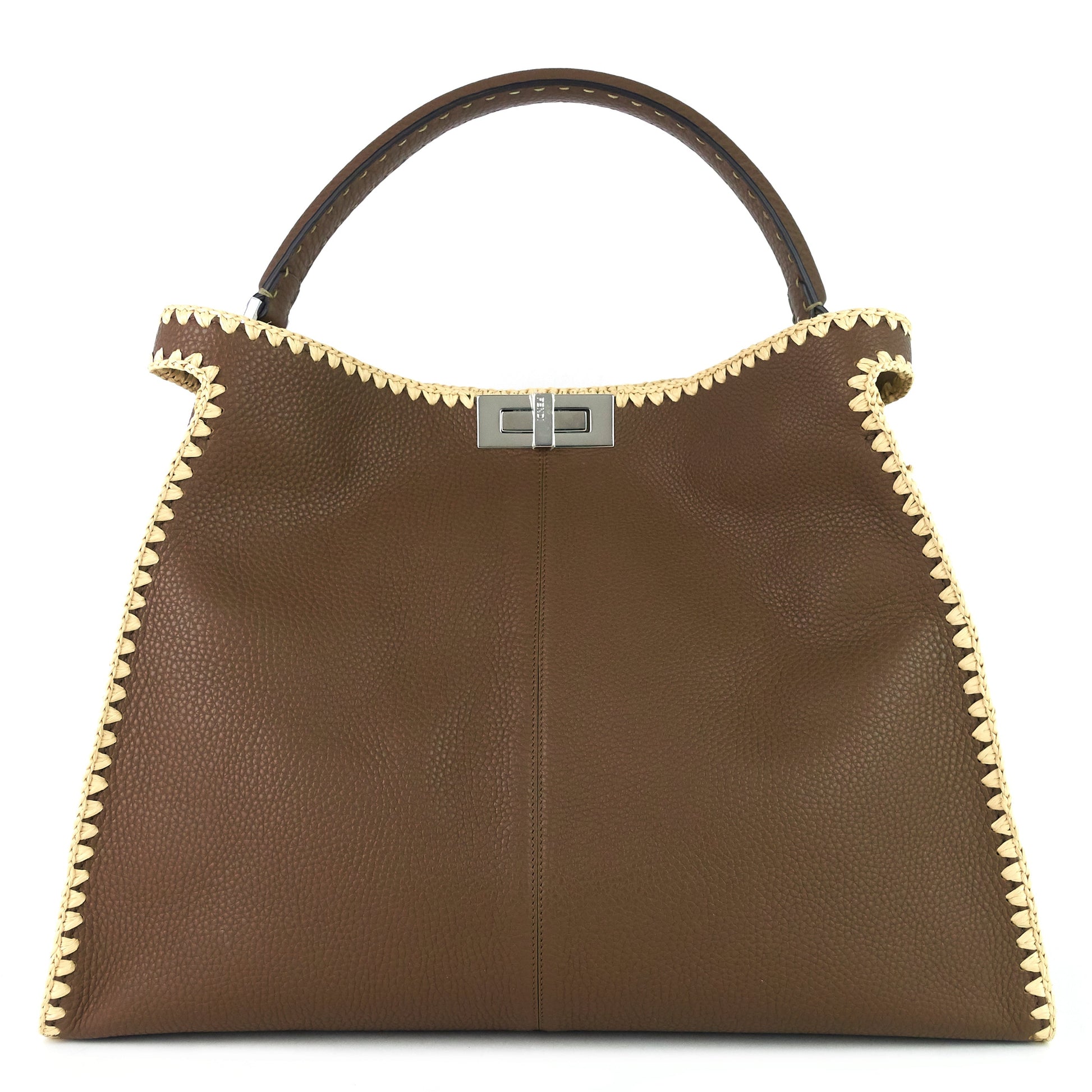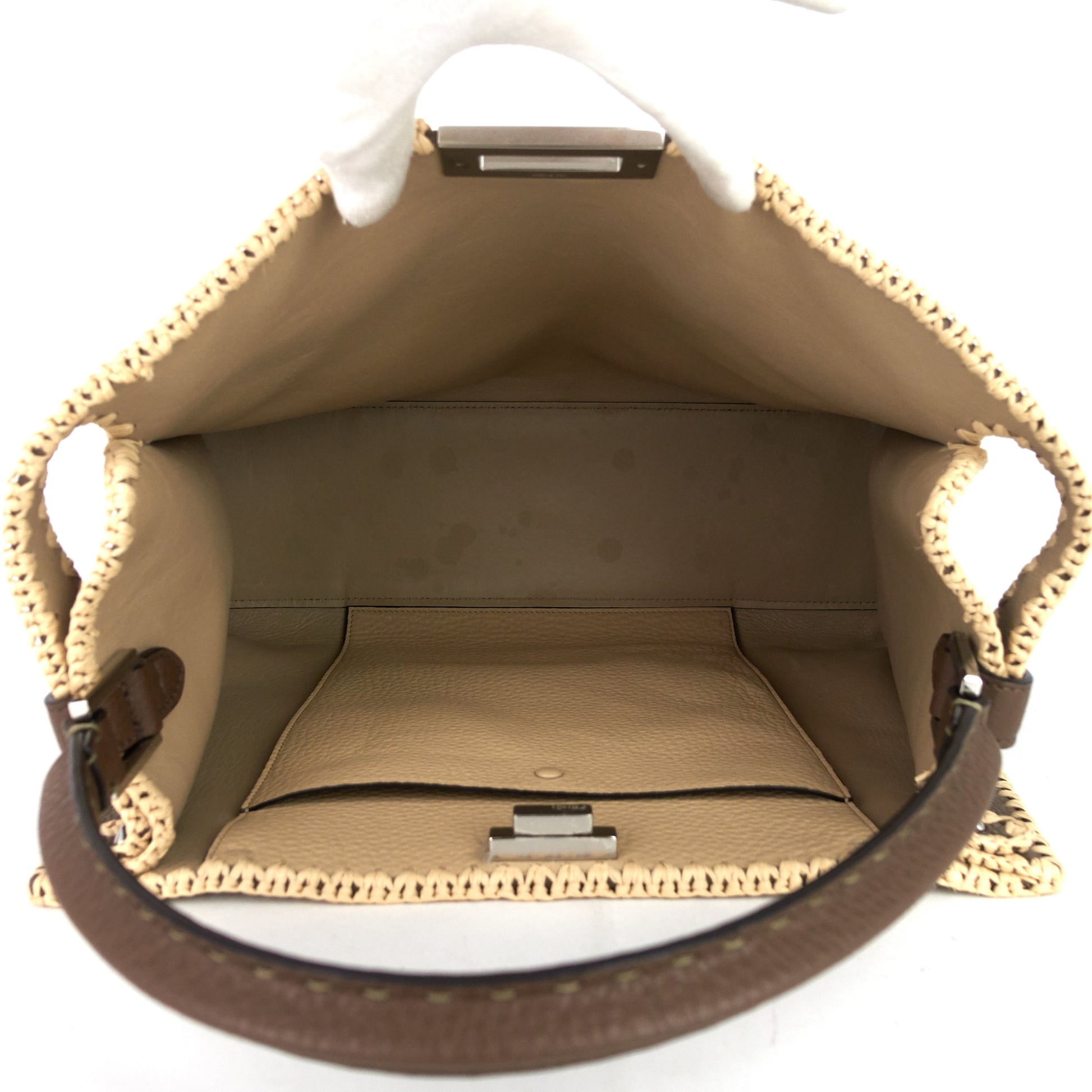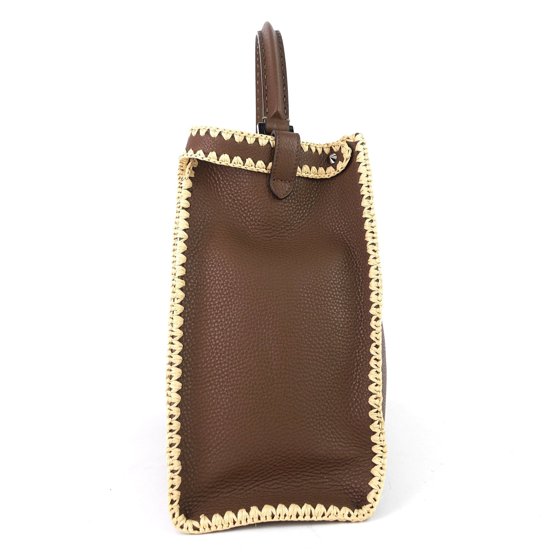 FENDI Peekaboo X-Lite Large Pebbled Calfskin and Raffia Tote Bag