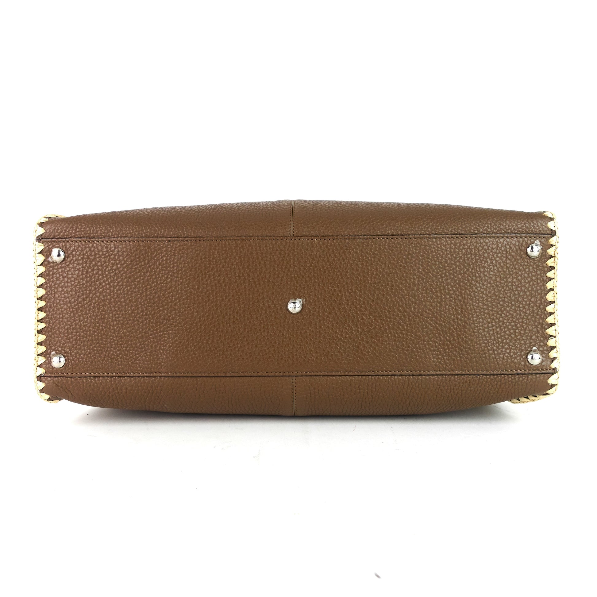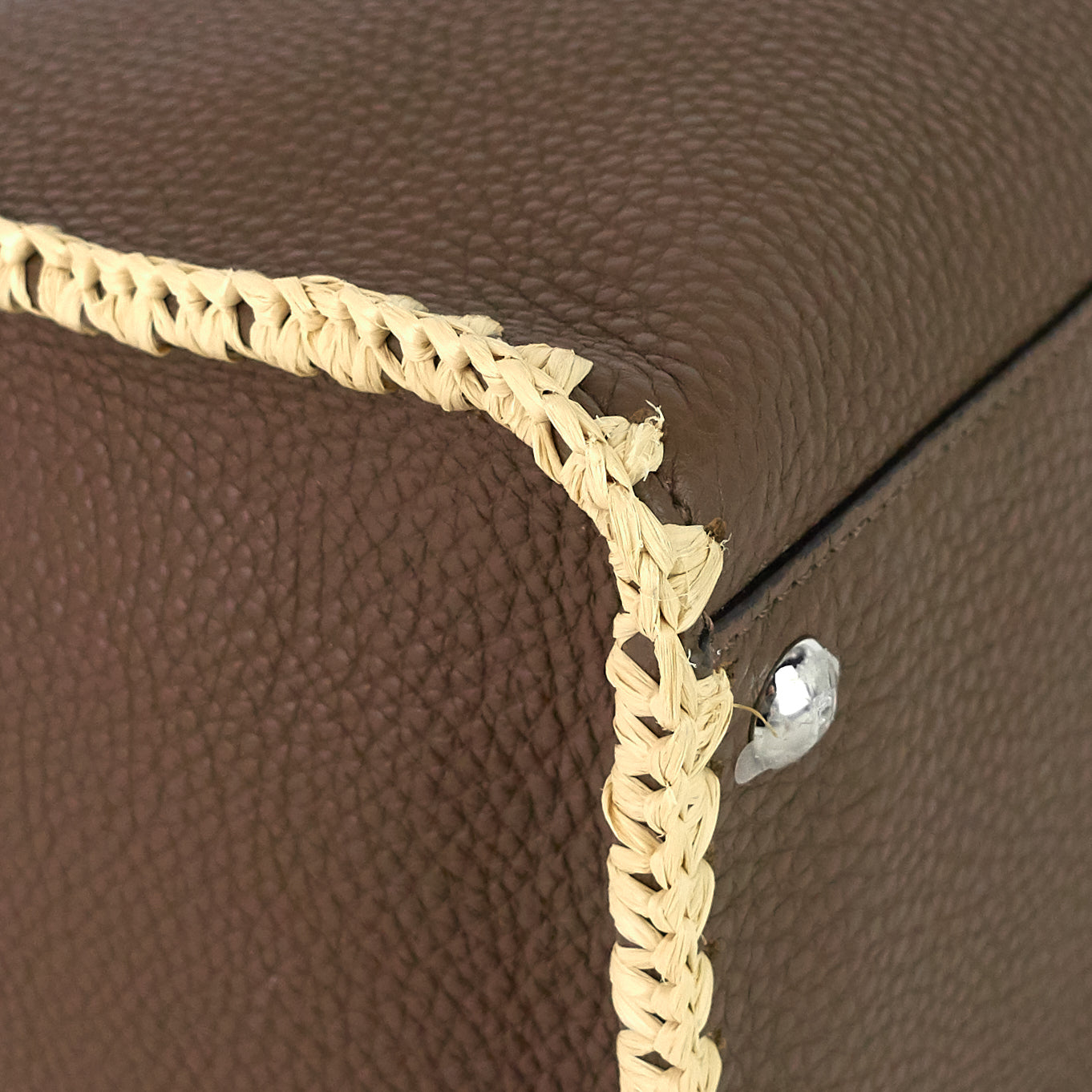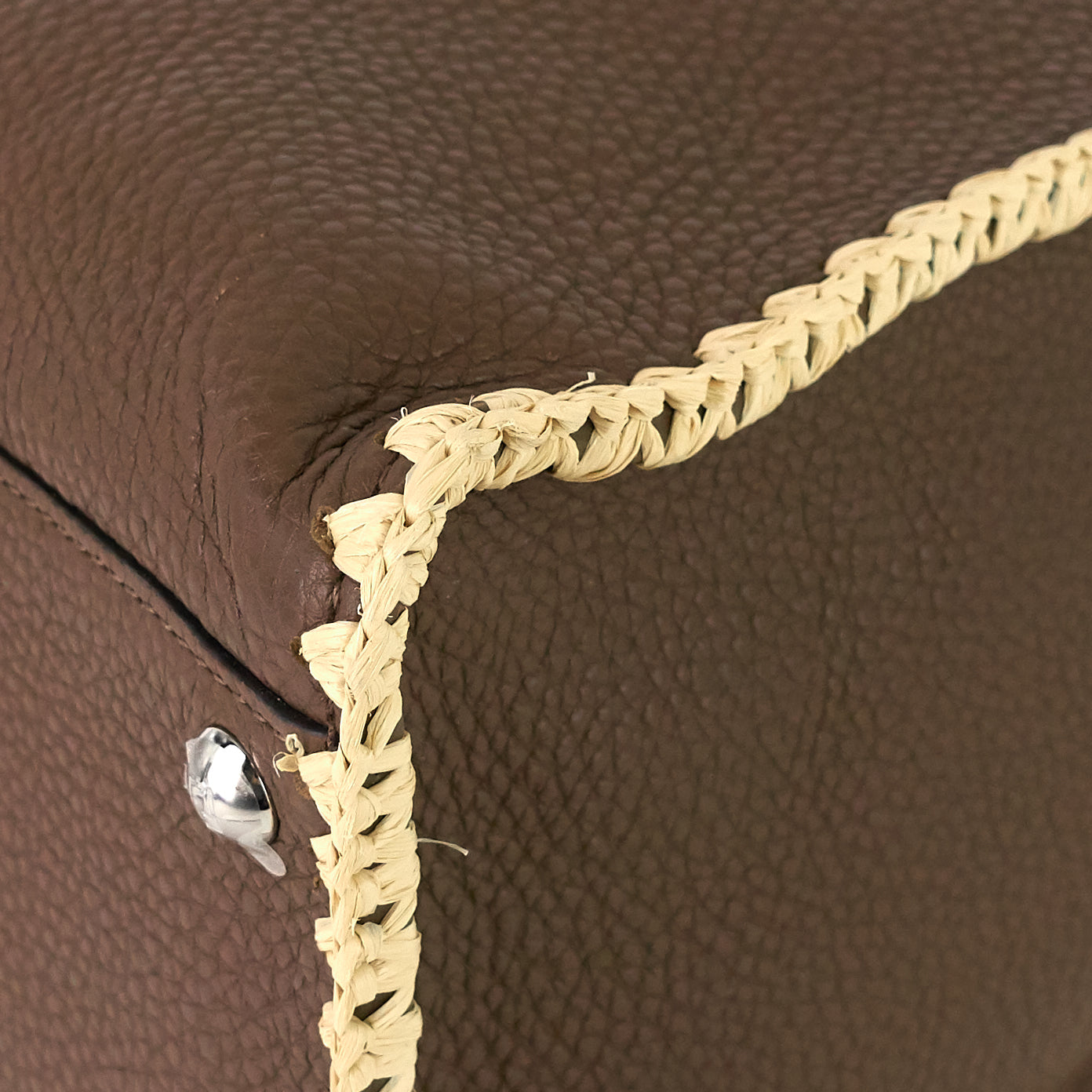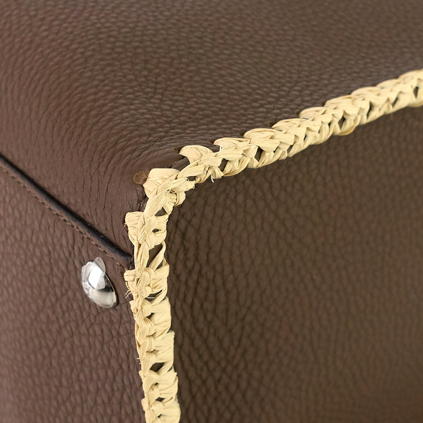 FENDI Peekaboo X-Lite Large Pebbled Calfskin and Raffia Tote Bag