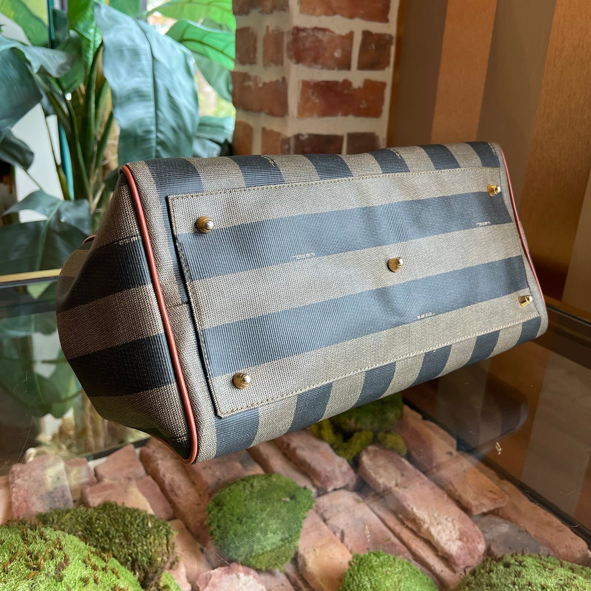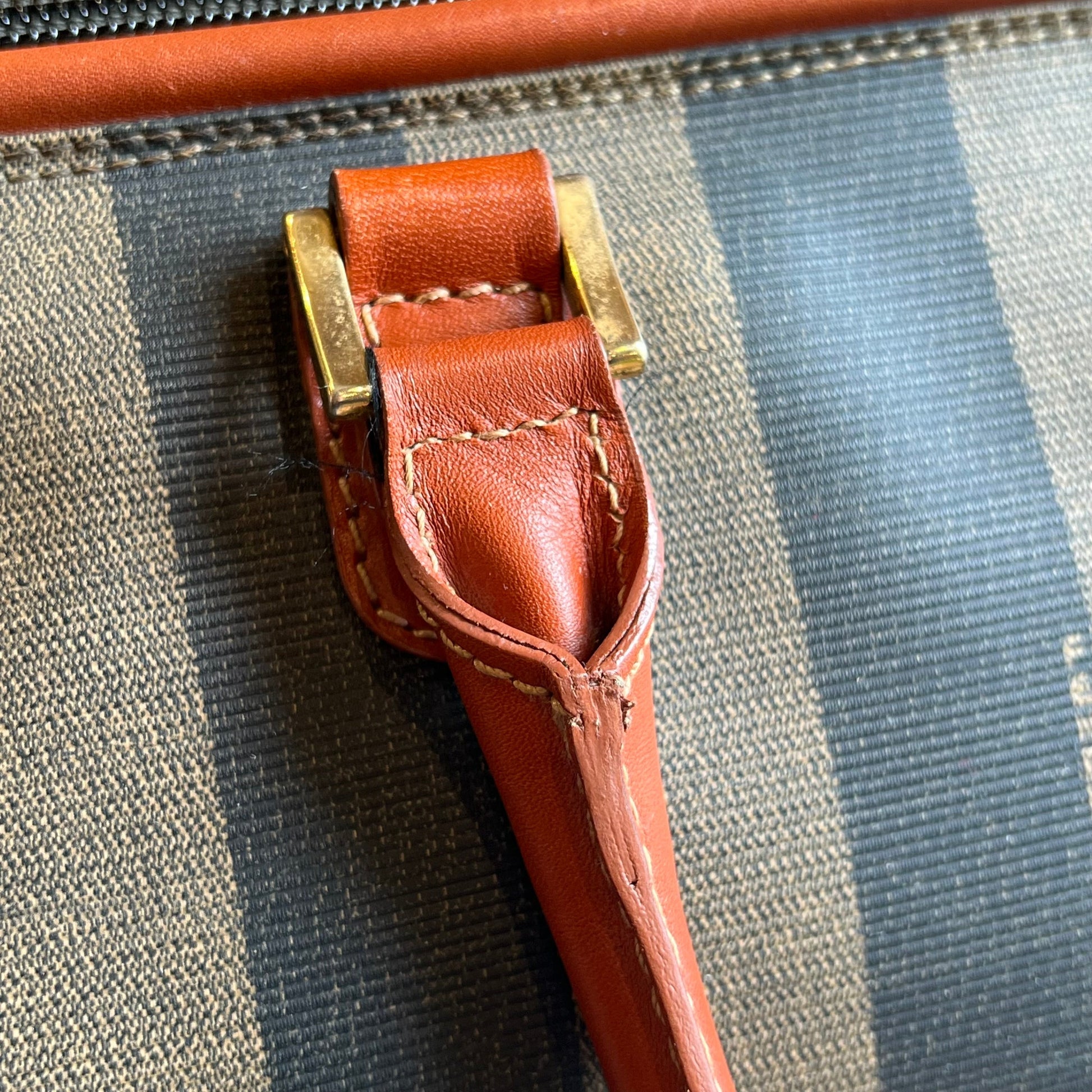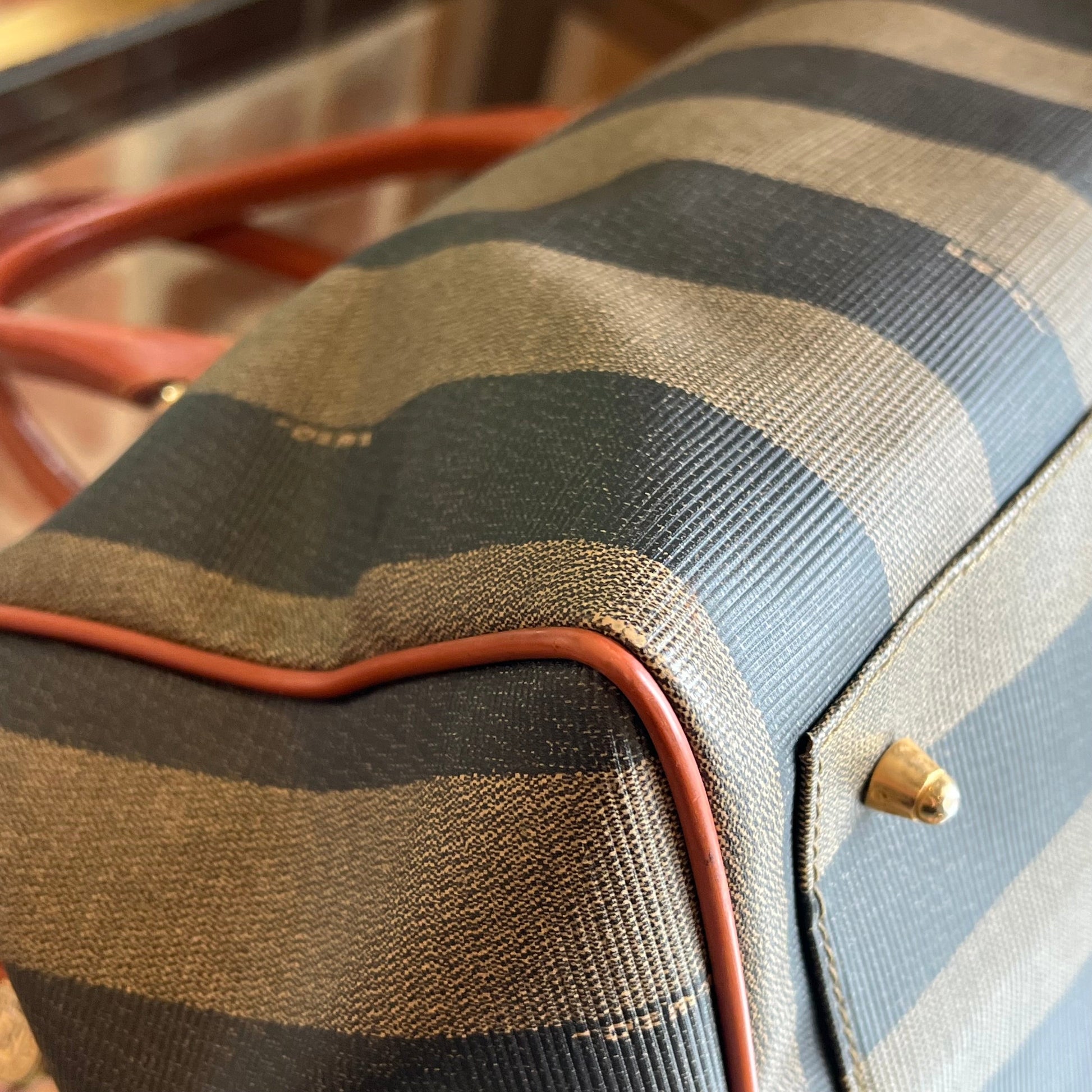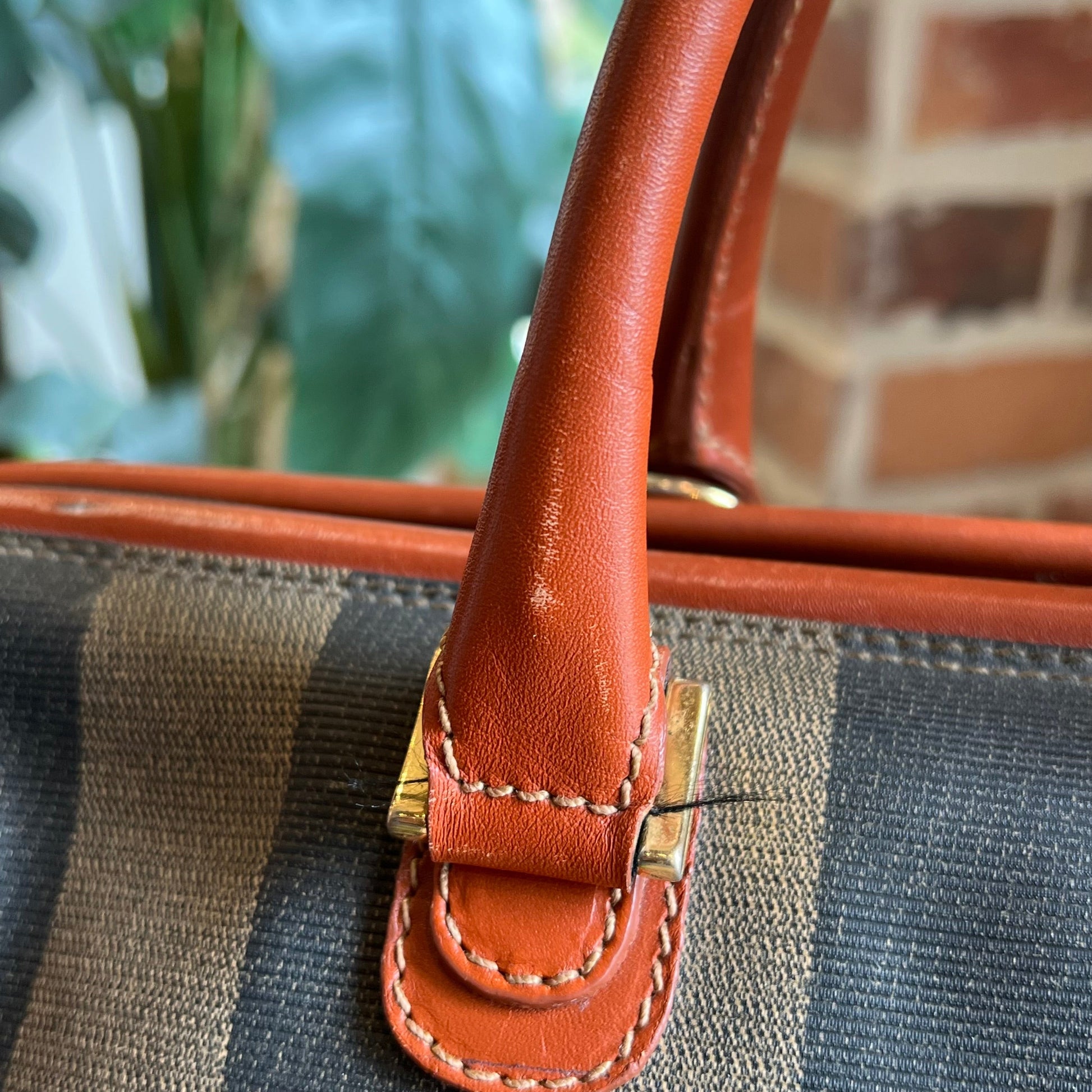 FENDI Tobacco Pequin Striped Canvas and Leather Vintage Satchel Bag