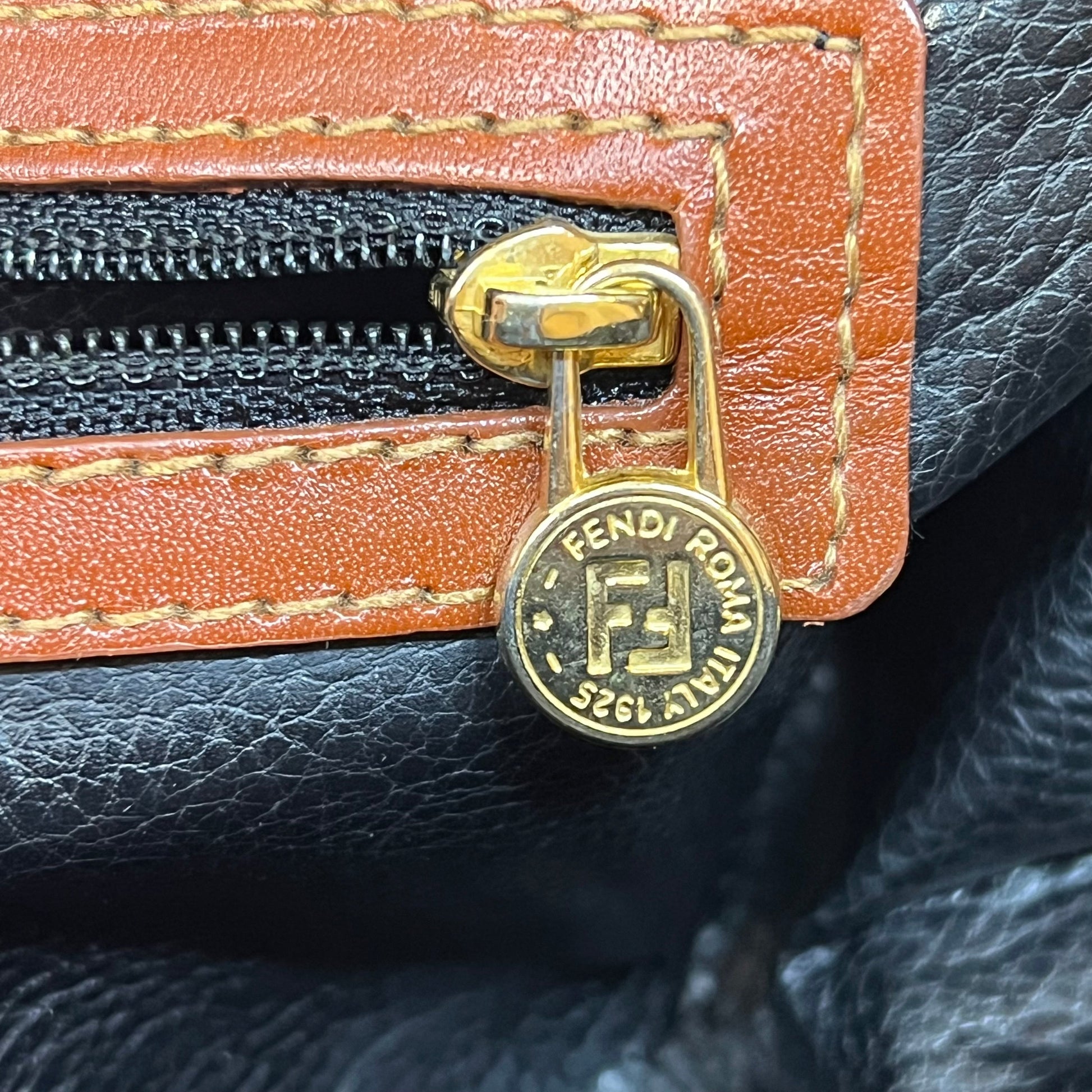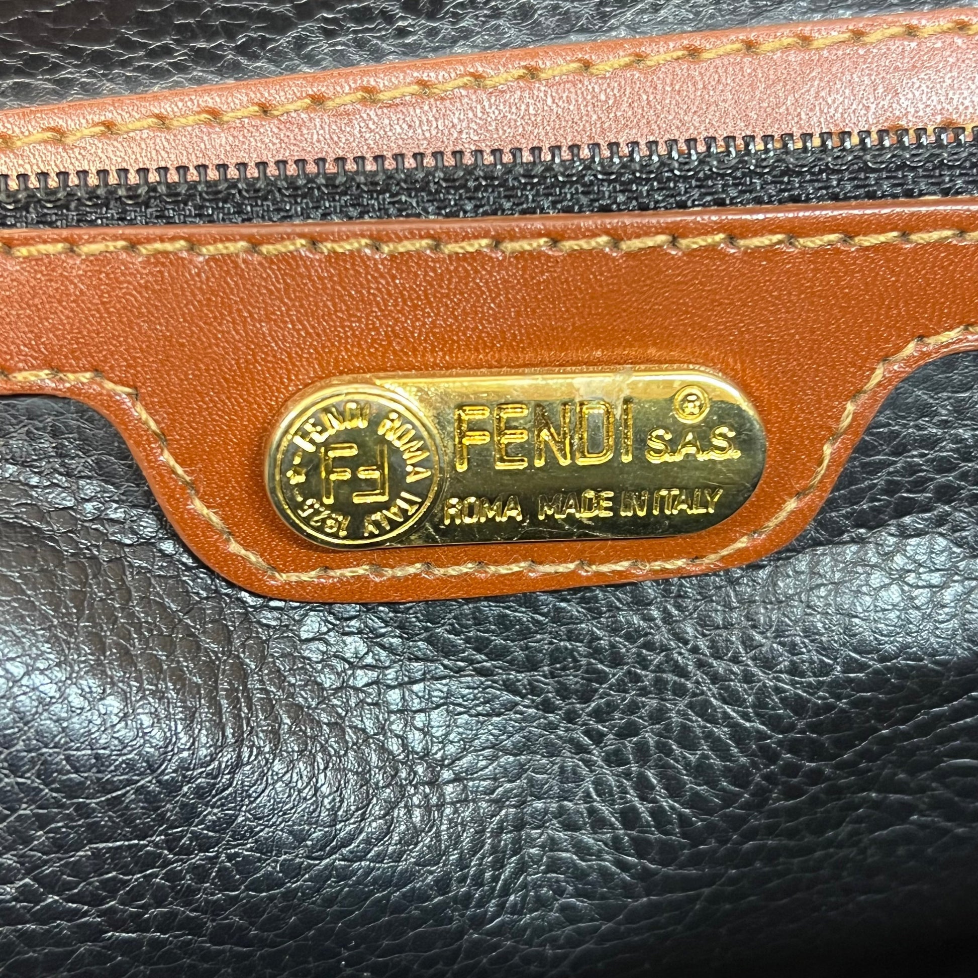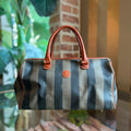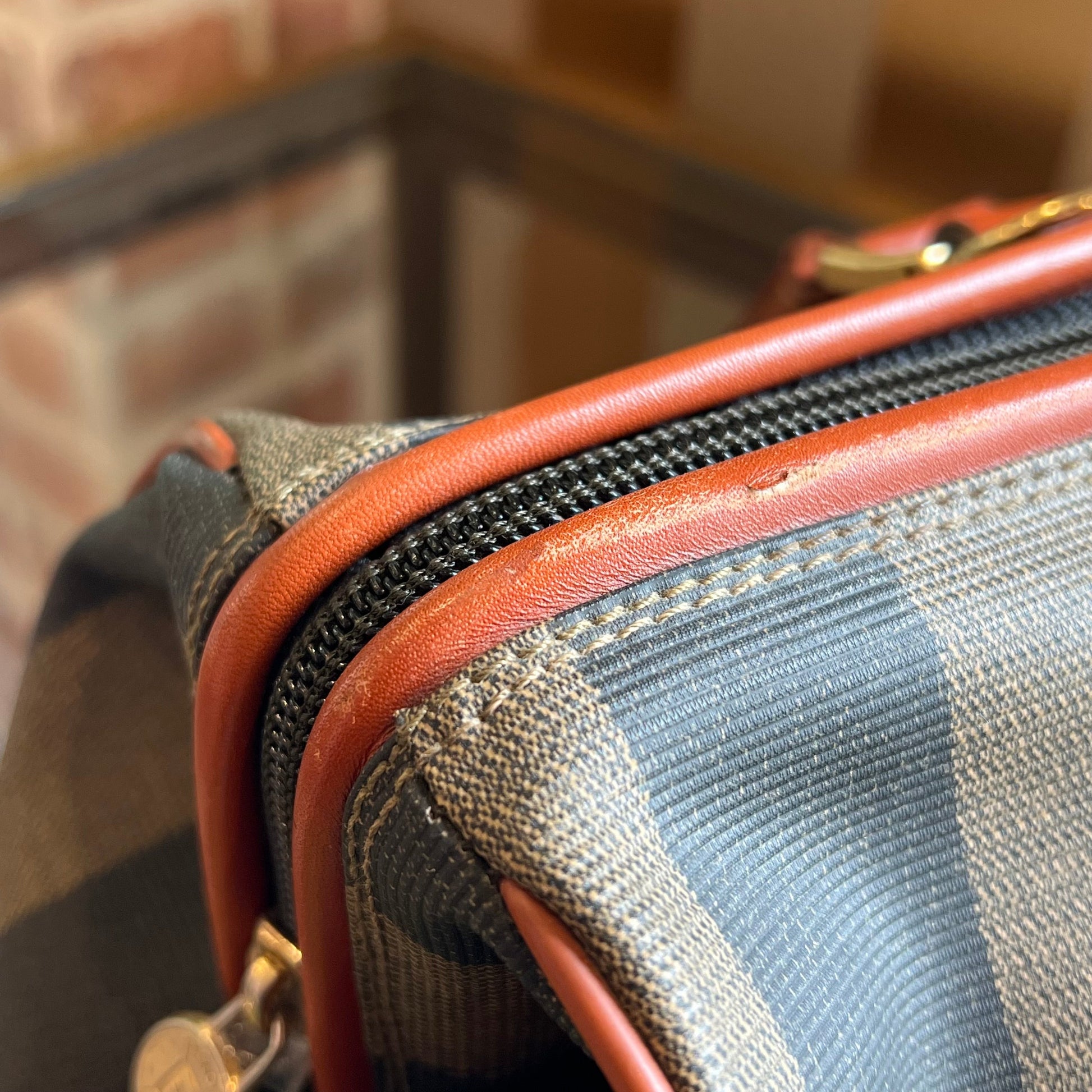 FENDI Tobacco Pequin Striped Canvas and Leather Vintage Satchel Bag