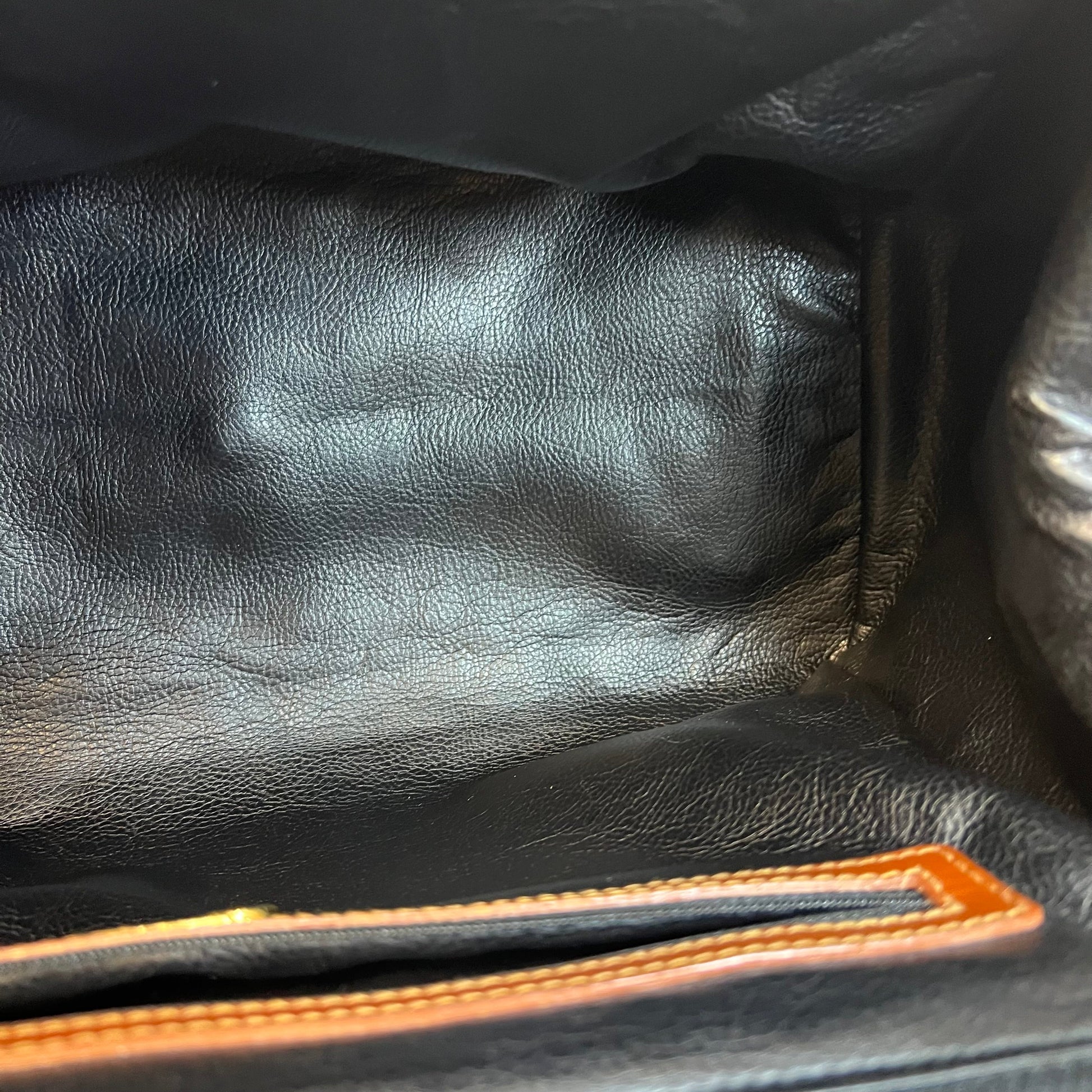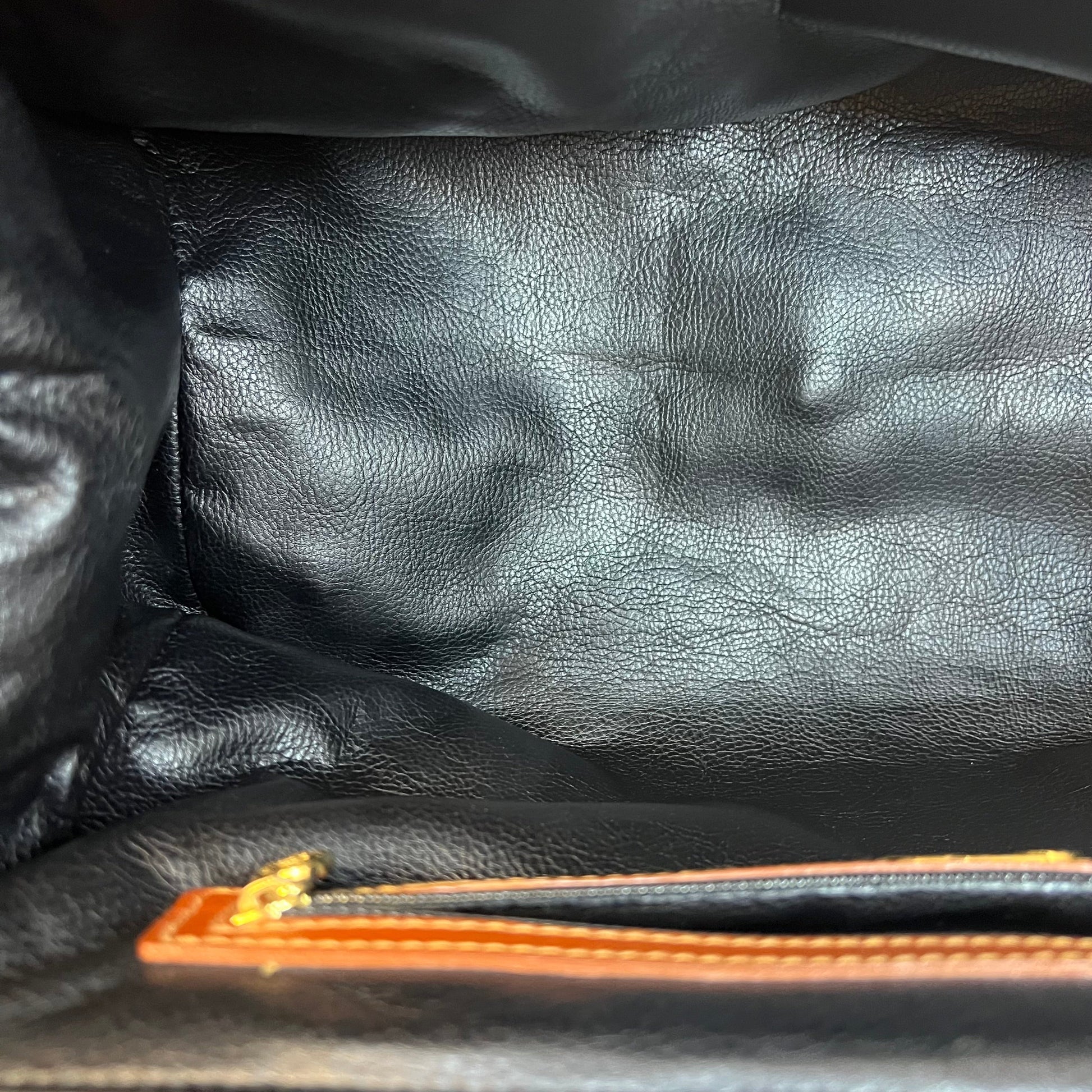 - Exterior: The coated canvas has softened from previous consistent use, with scuffing at the bottom corners. The leather trim shows signs of rubbing, scuffing, gentle lifting, and a mark. Despite these imperfections, the exterior retains its timeless allure.