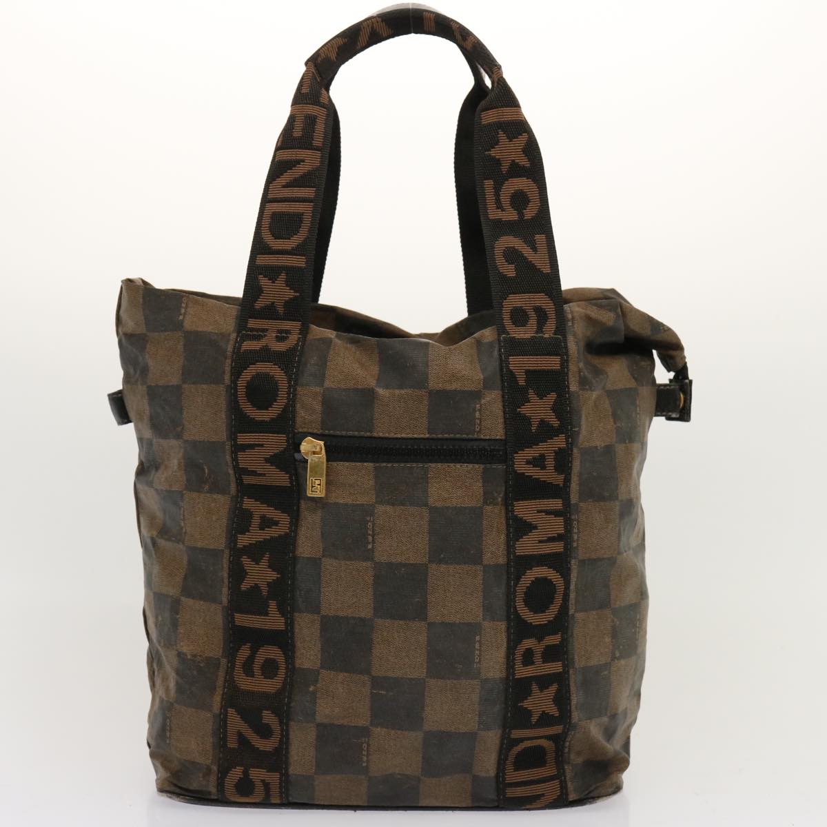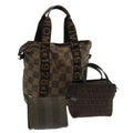 FENDI Pequin Zucchino Pouch Hand Bag Coated Canvas 3Set Brown Auth bs13404
