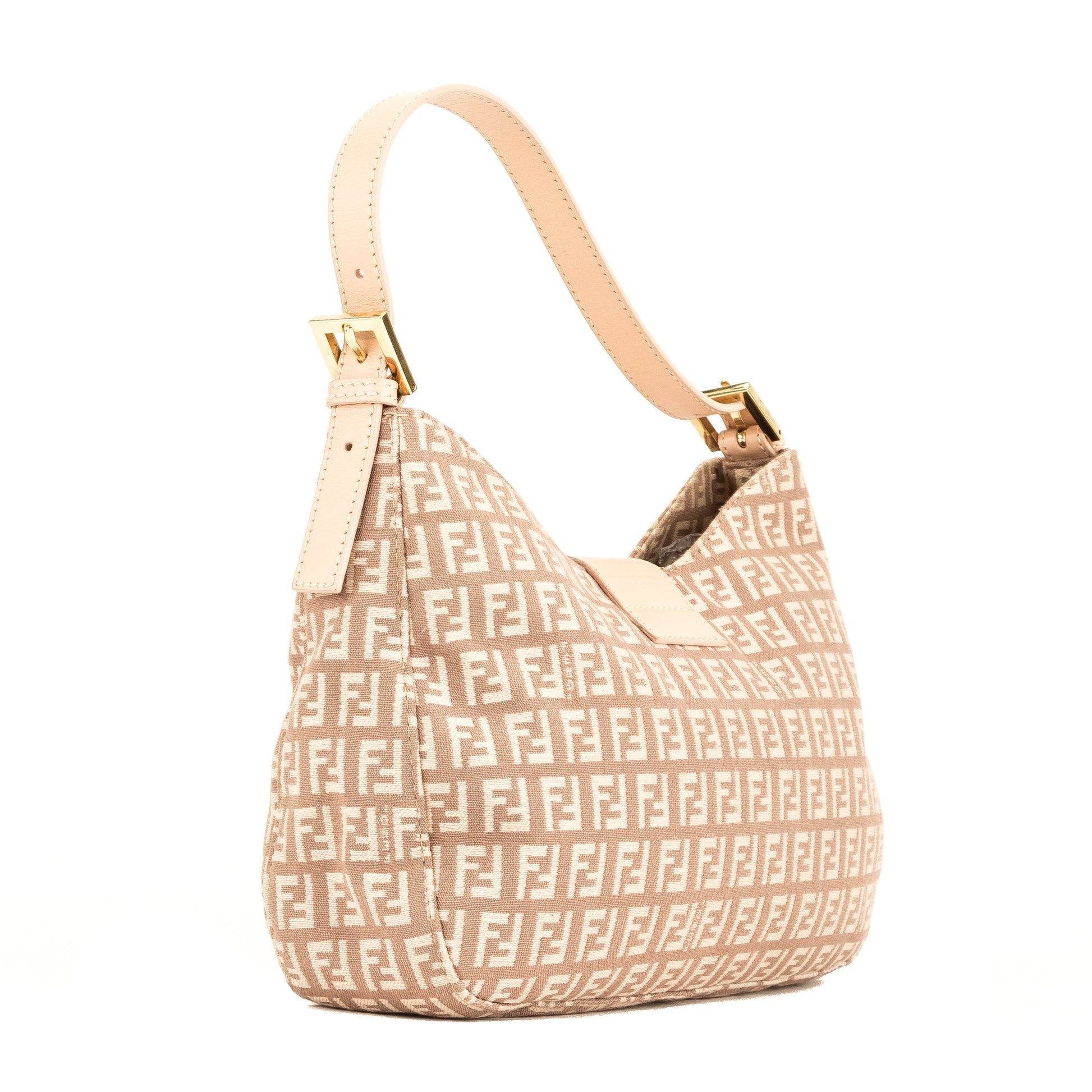 This is an , FENDI Zucca Bag. This is a vintage, petite Fendi shoulder bag for any occasion. It features the Fendi Zucca canvas with an adjustable pink leather handle and gold-tone hardware. The interior has a textile lining with a zip pocket, a front open pocket, space for your necessities, and a cross-over tab with a Fendi magnetic snap closure. Add this chic Fendi bag to your collection! Made in Italy.