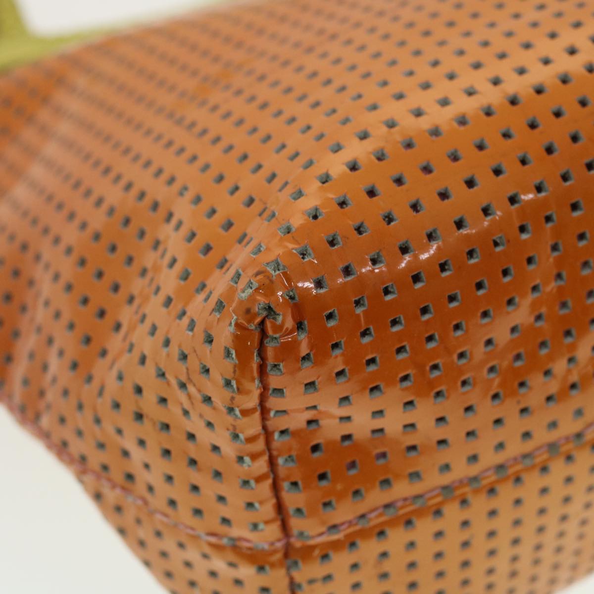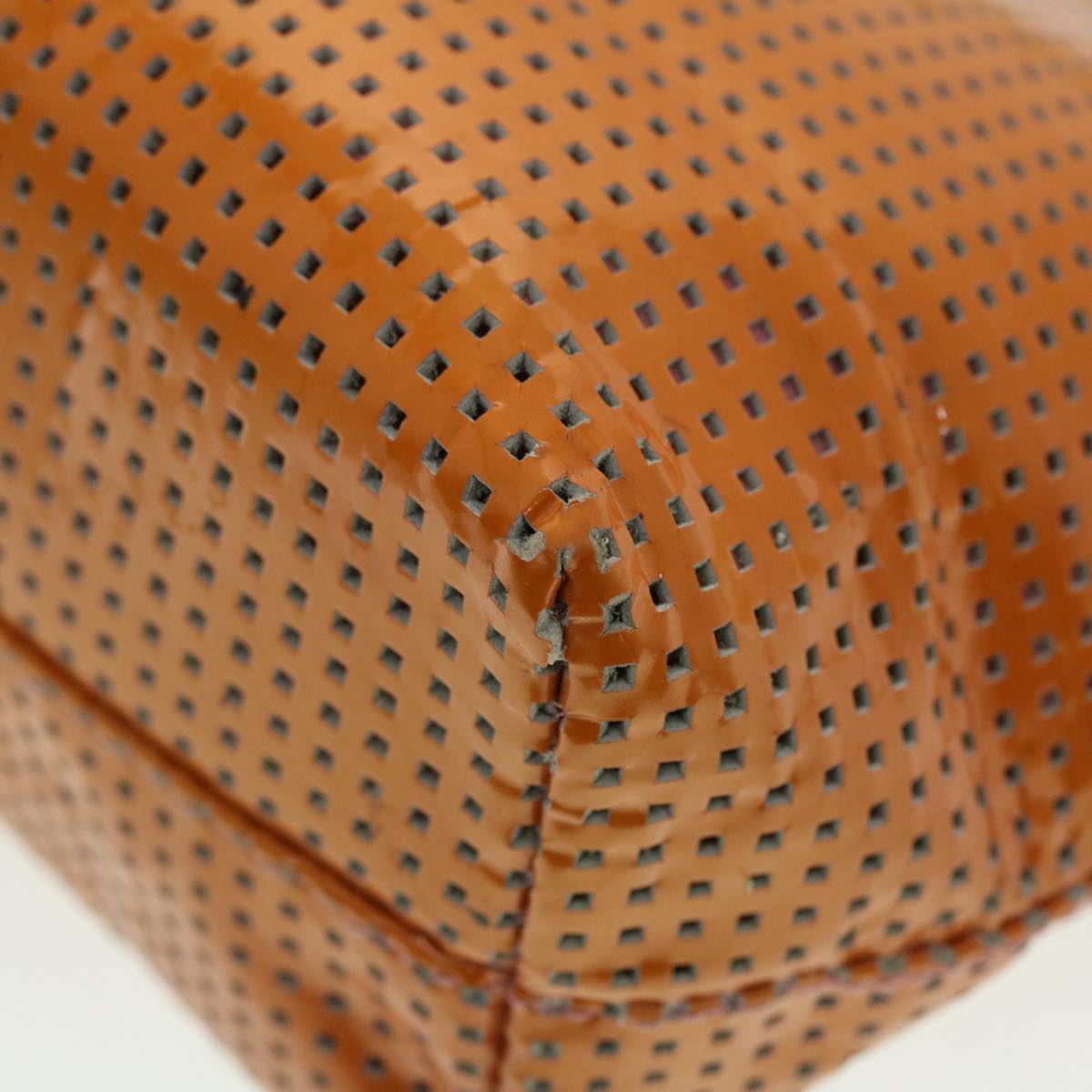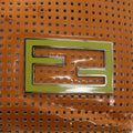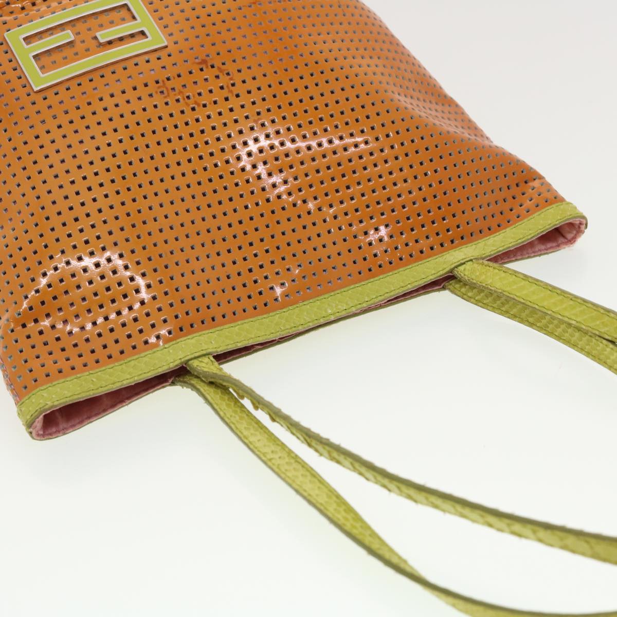 FENDI punching Tote Bag Patent leather Orange 2813-26731-008 Auth rd4723