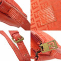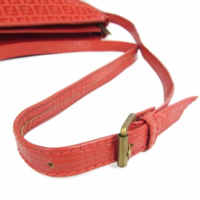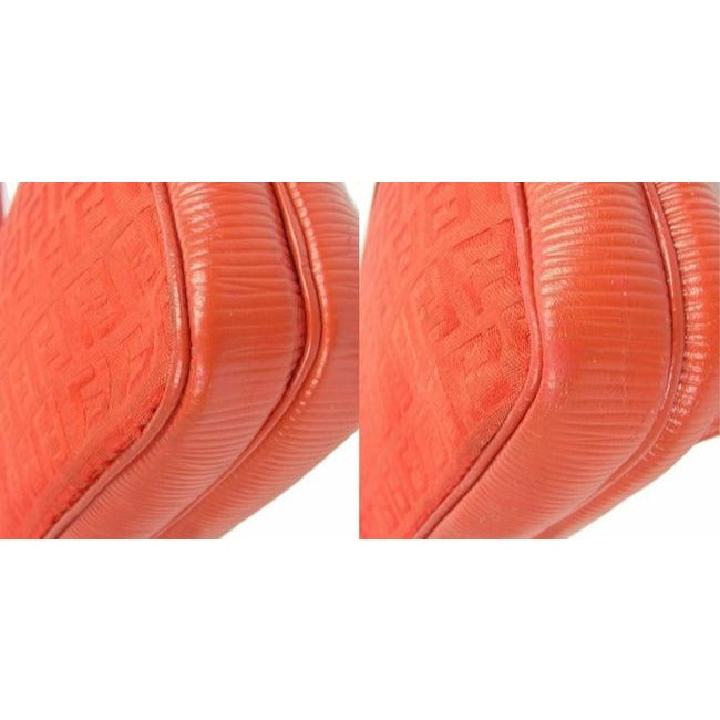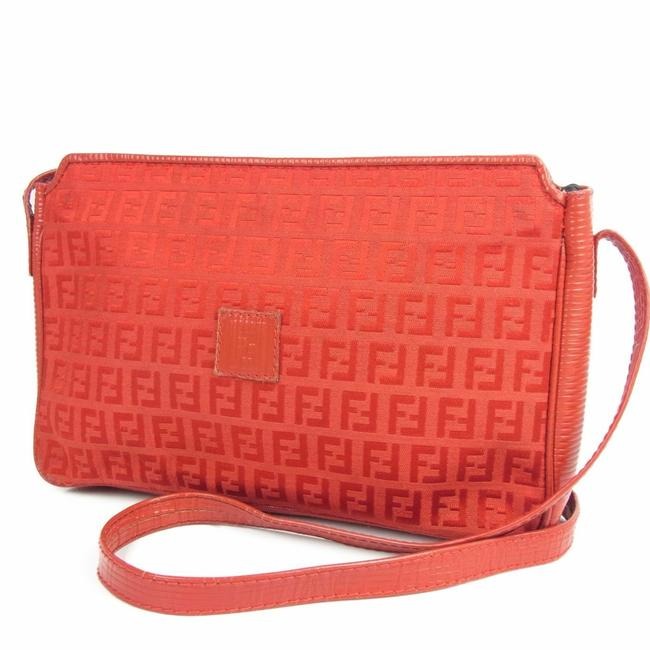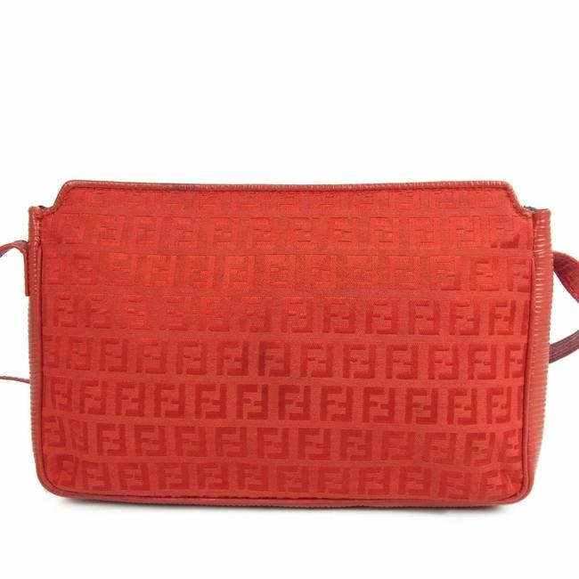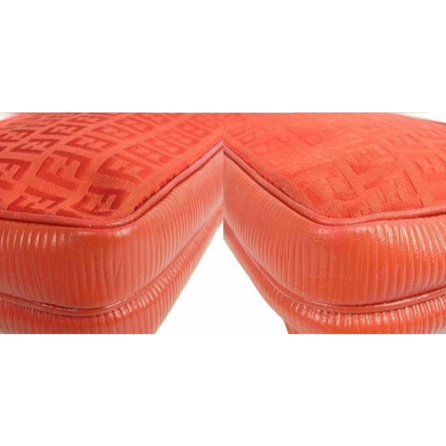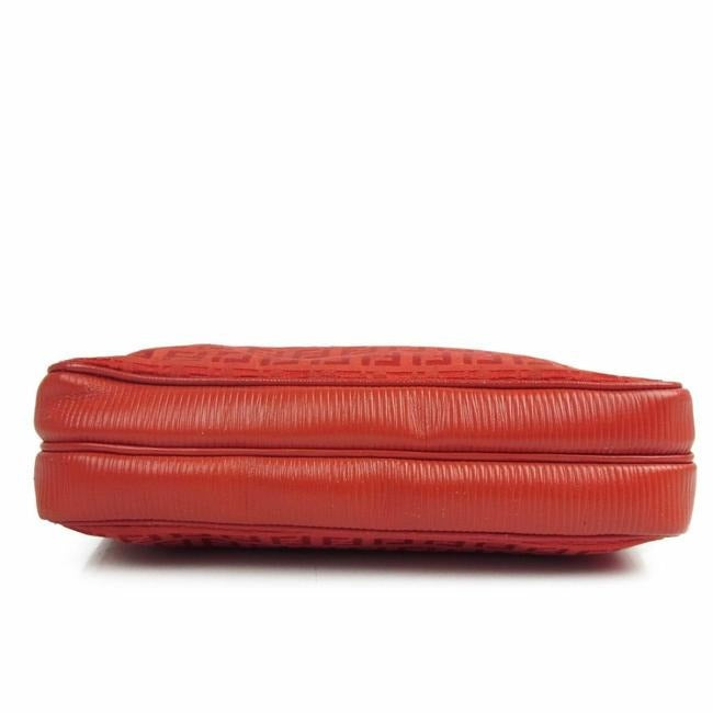 Fendi Purse Red Zucchino Or Small F Logo Print Canvas And Red Leather Shoulder Bag