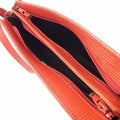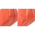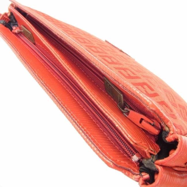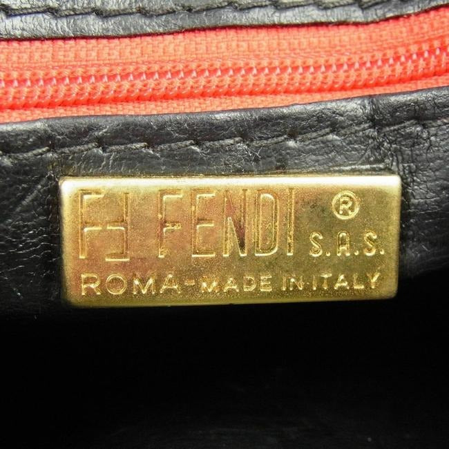 The interior is lined in black leather that is very clean. There are two separate, zip close compartments and each one has a back zipper pocket. It has everything you'd expect to see on an authentic Fendi of this era- stamped hardware, fobs on the zippers, and a Fendi SAS Roma stamp. It predates stamped serial numbers that are usually found in the pocket. This will be the only red purse you will ever need! It is the perfect red handbag for any time of year!