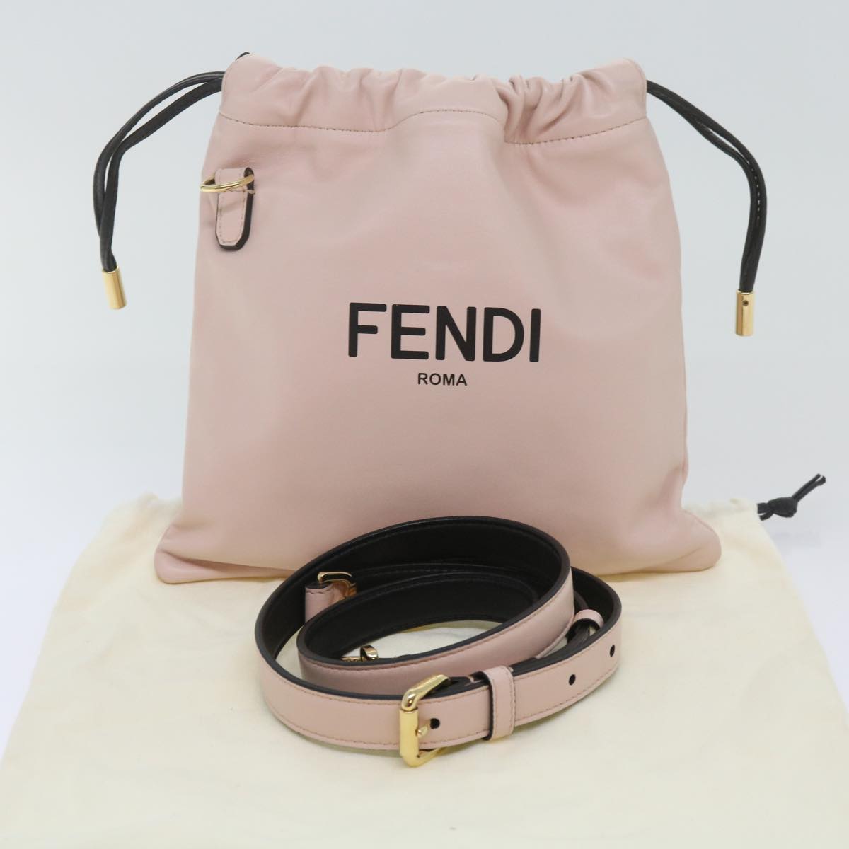 FENDI Purse Shoulder Bag Leather Beige Auth 69042A