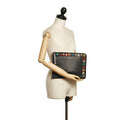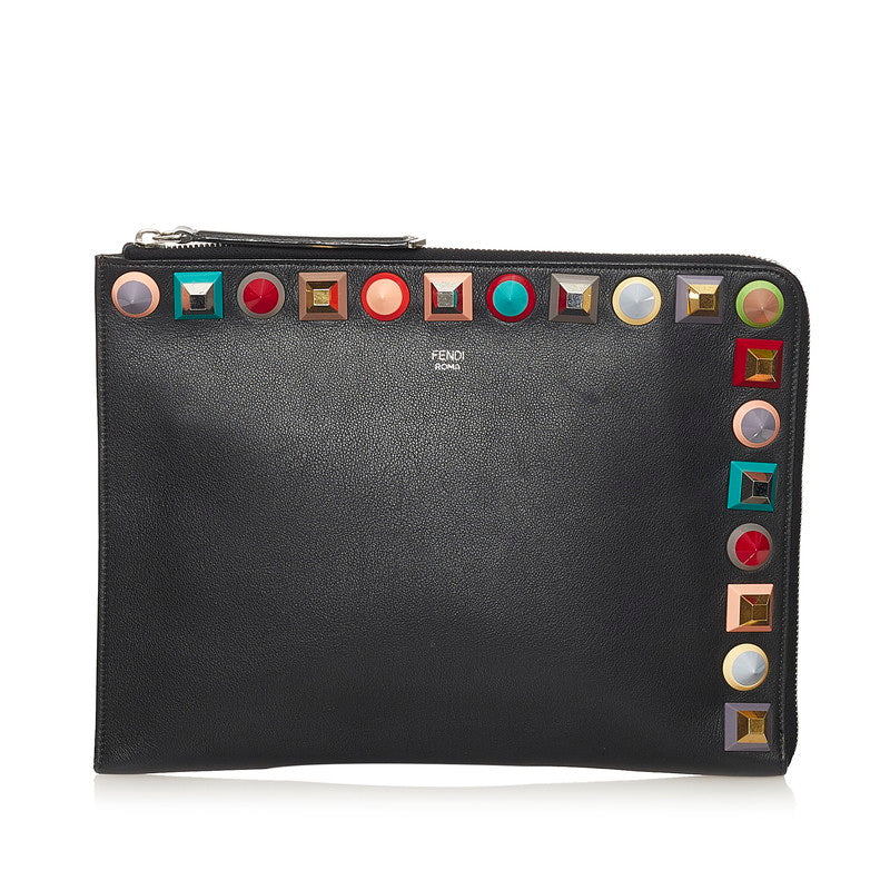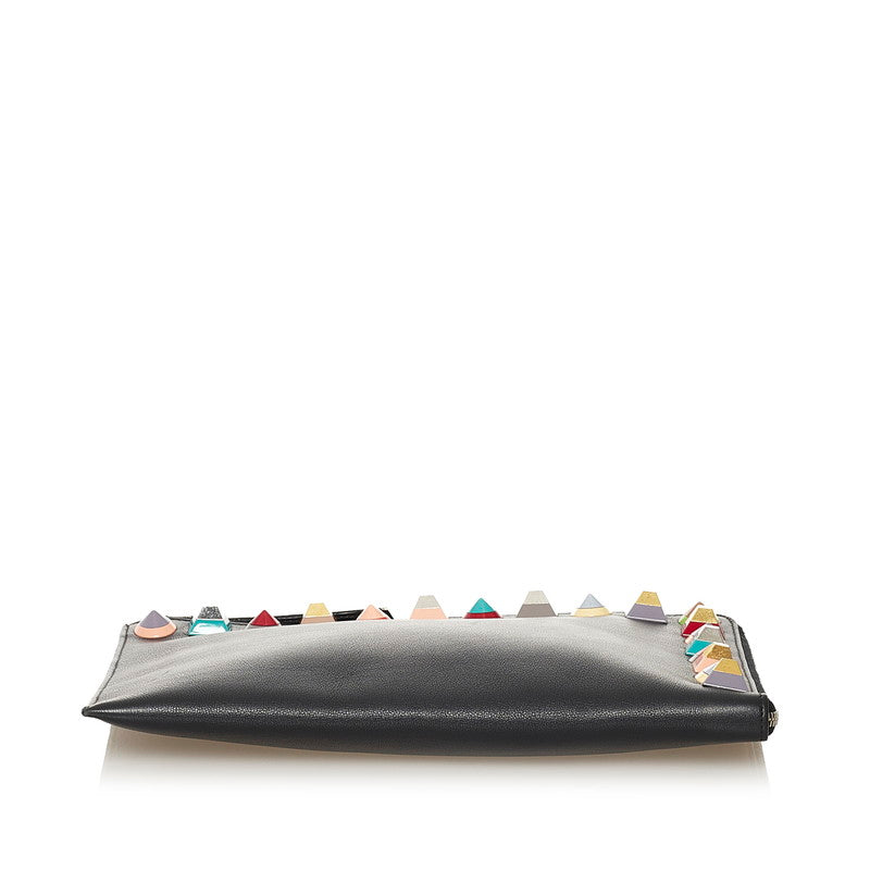 This Fendi Rainbow Studded Leather Clutch features a Black Calfskin.