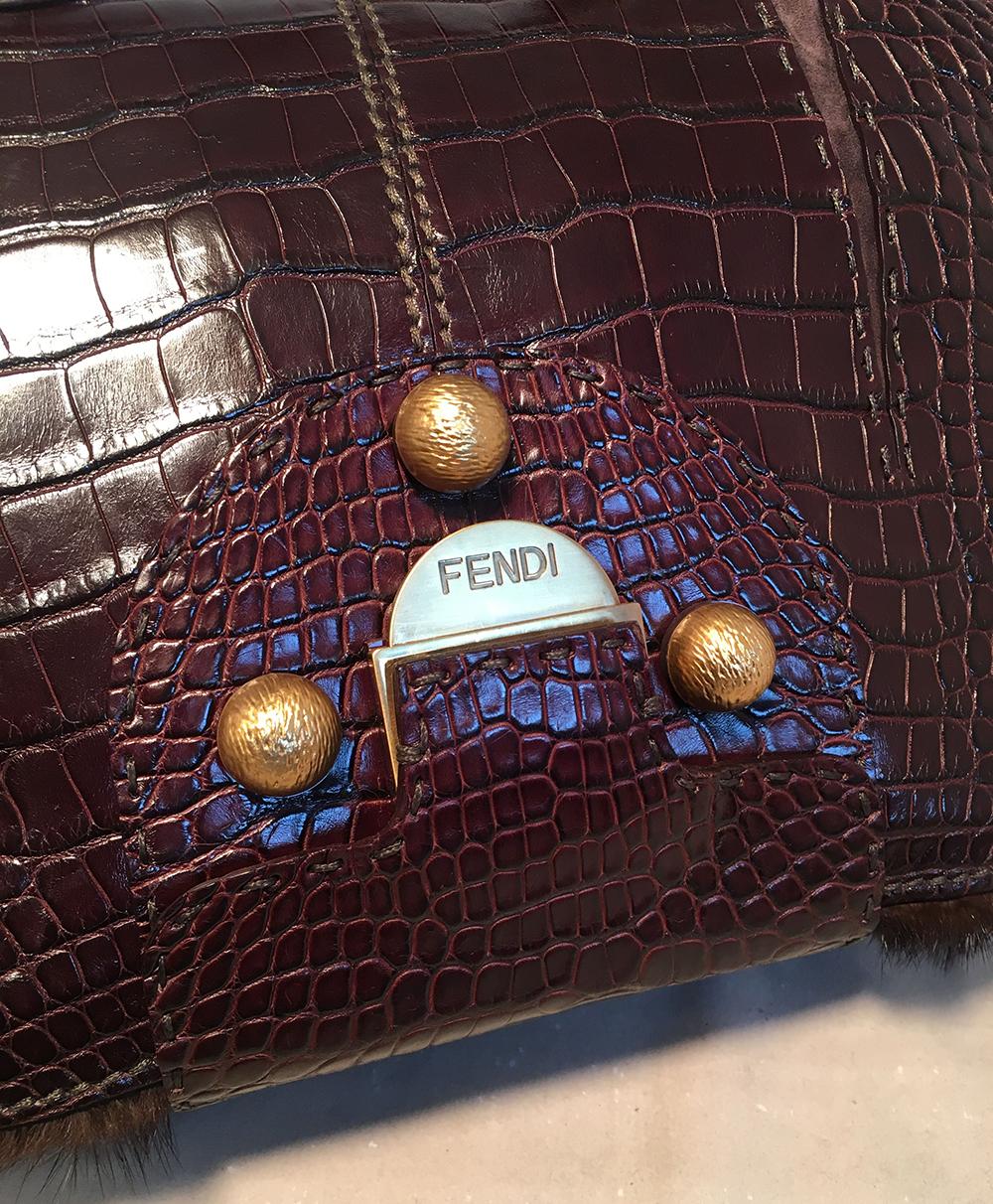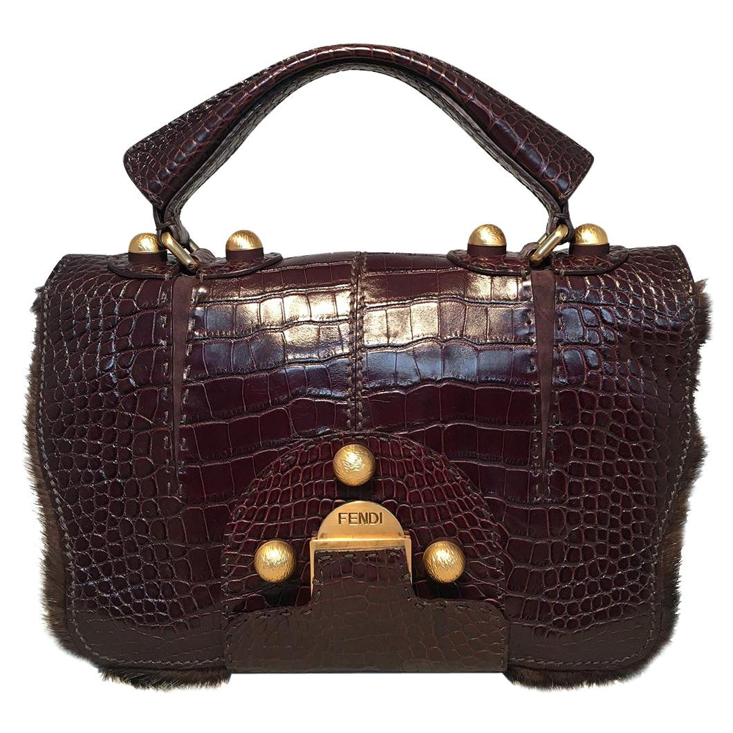 FENDI Rare Limited Edition Brown Alligator and Mink Fur Satchel Handbag