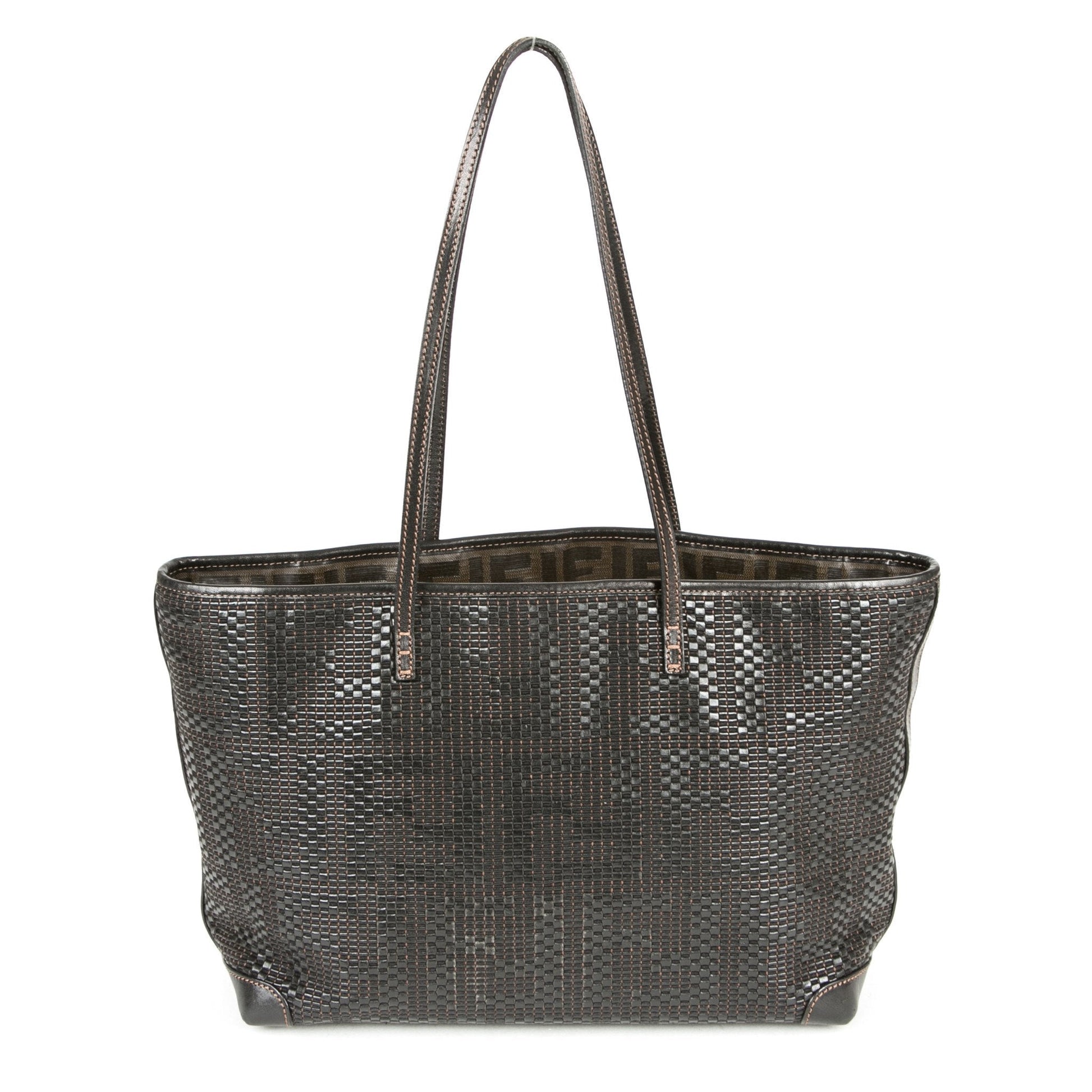 This pre owned Fendi Reversible Tote Bag features the classic FF mono in the interior with black leather trimmings, and black nylon canvas in the exterior. This Fendi Tote Bag is a stylish tote bag with the Zucca Fendi logo fabric and leather handles. A great tote were you can put all your belongings.: Pre Owned