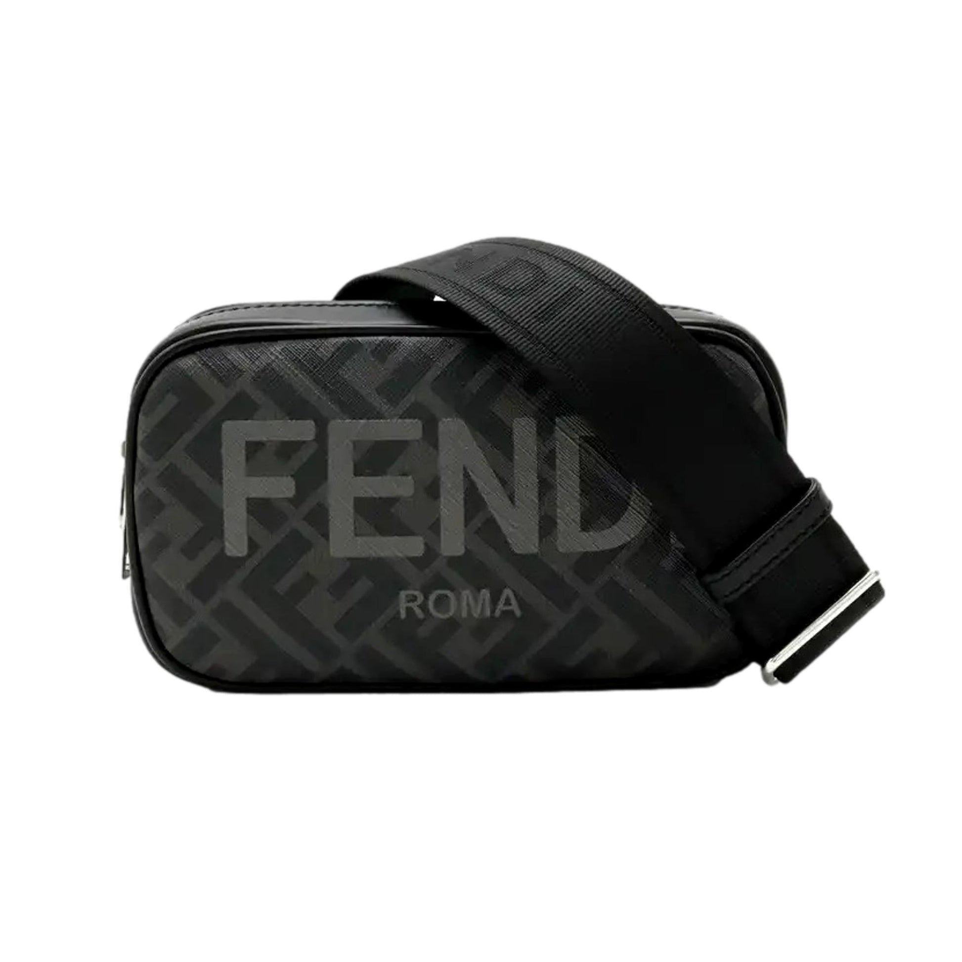 Fendi Roma Black Zucca Canvas Mini Camera Crossbody Bag