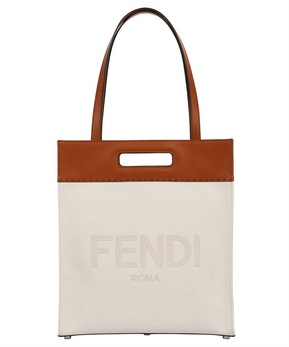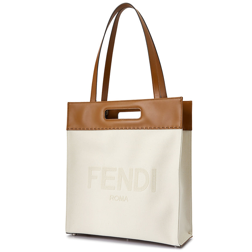 Fendi Roma Brand Embroidered Canvas And Leather Tote Bag 7VA481