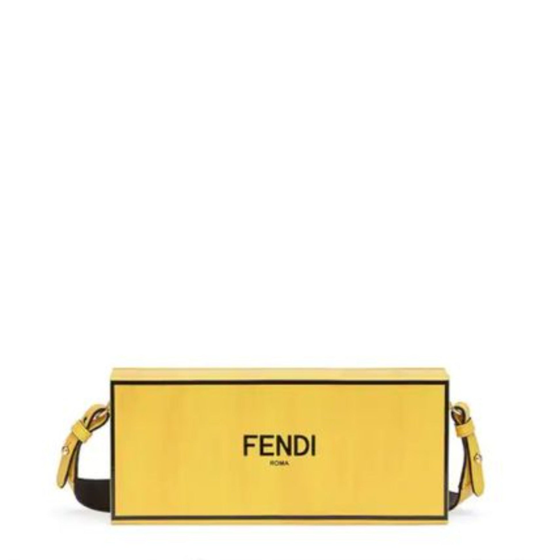From the Fendi Street Style collection, this unique box style Fendi shoulder bag will be a unique addition to your closet! The iconic yellow and black combination and boxy design style will have heads turning your way. Crafted in smooth leather and featuring a leather shoulder strap and the Fendi Roma logo across the front.