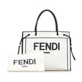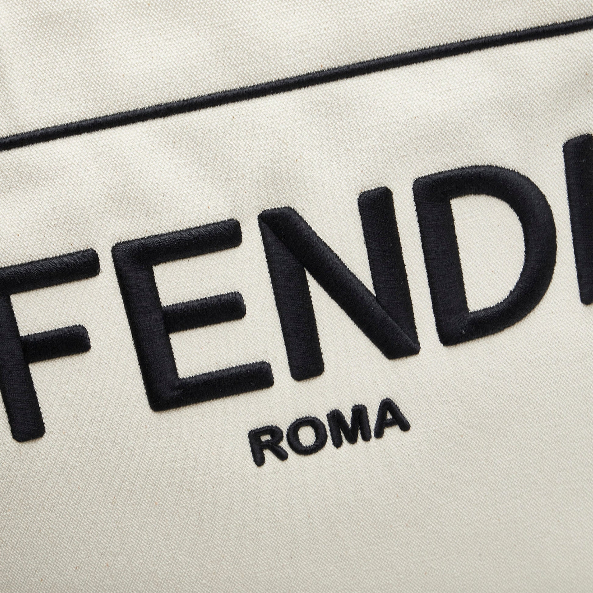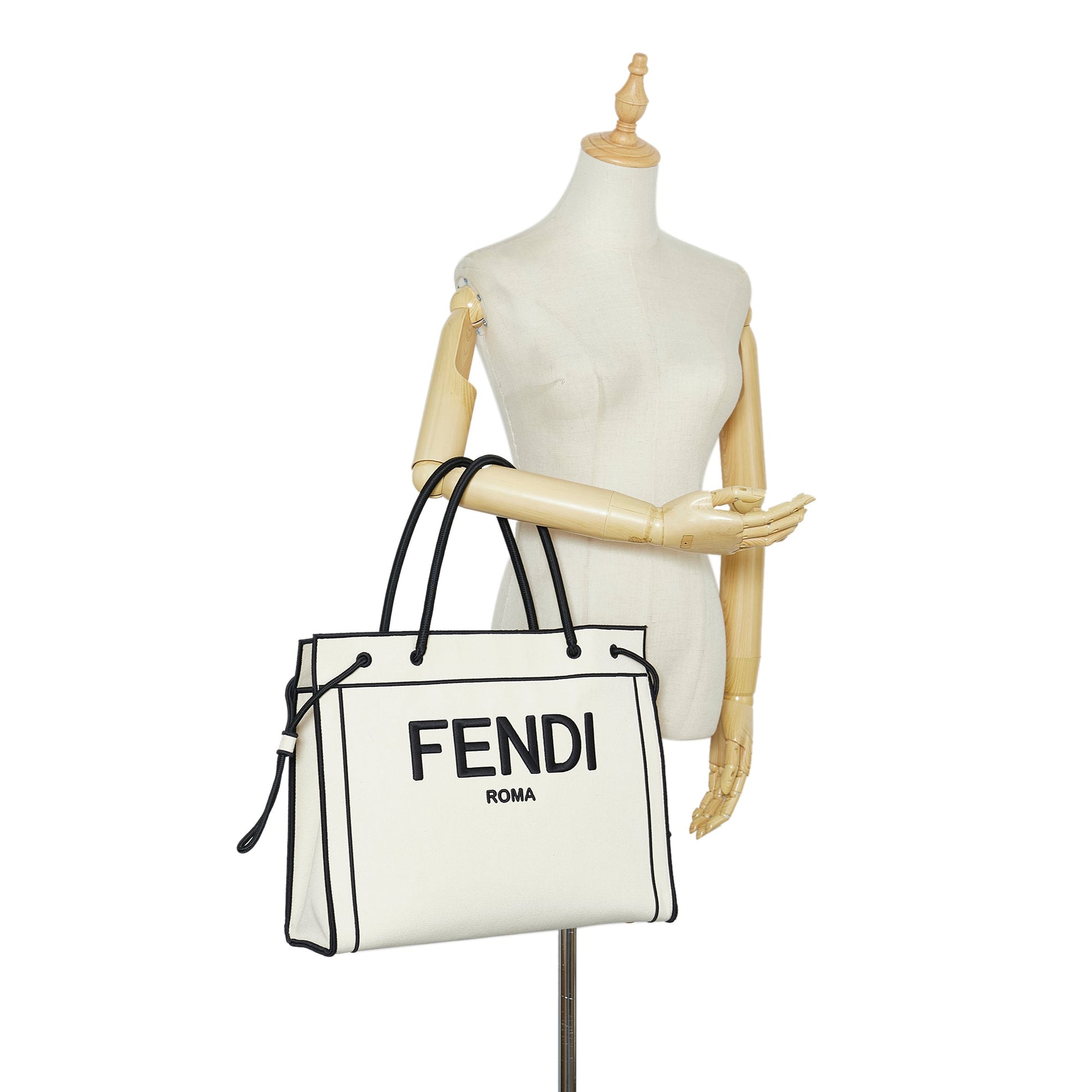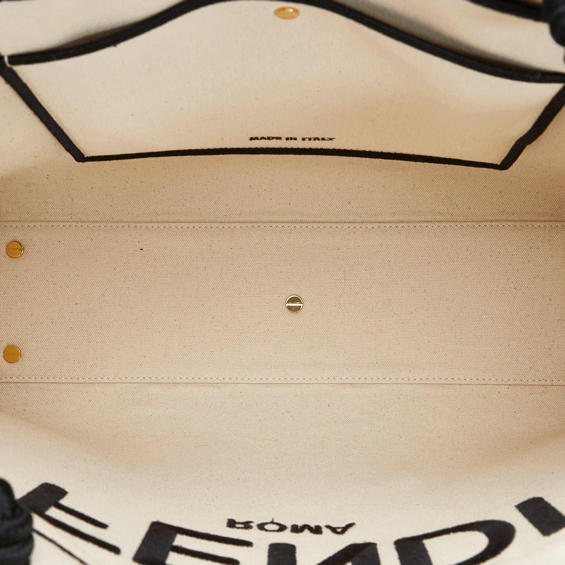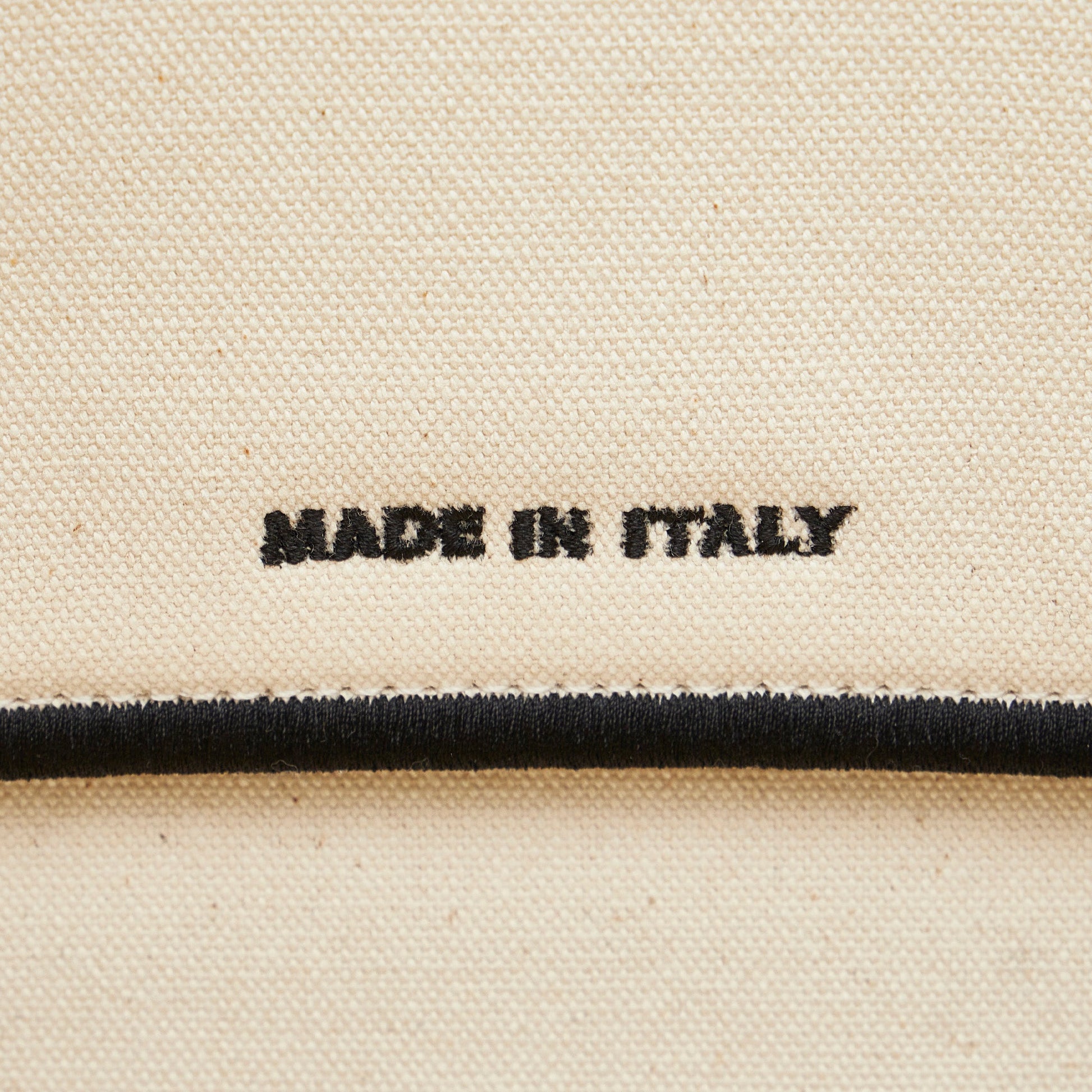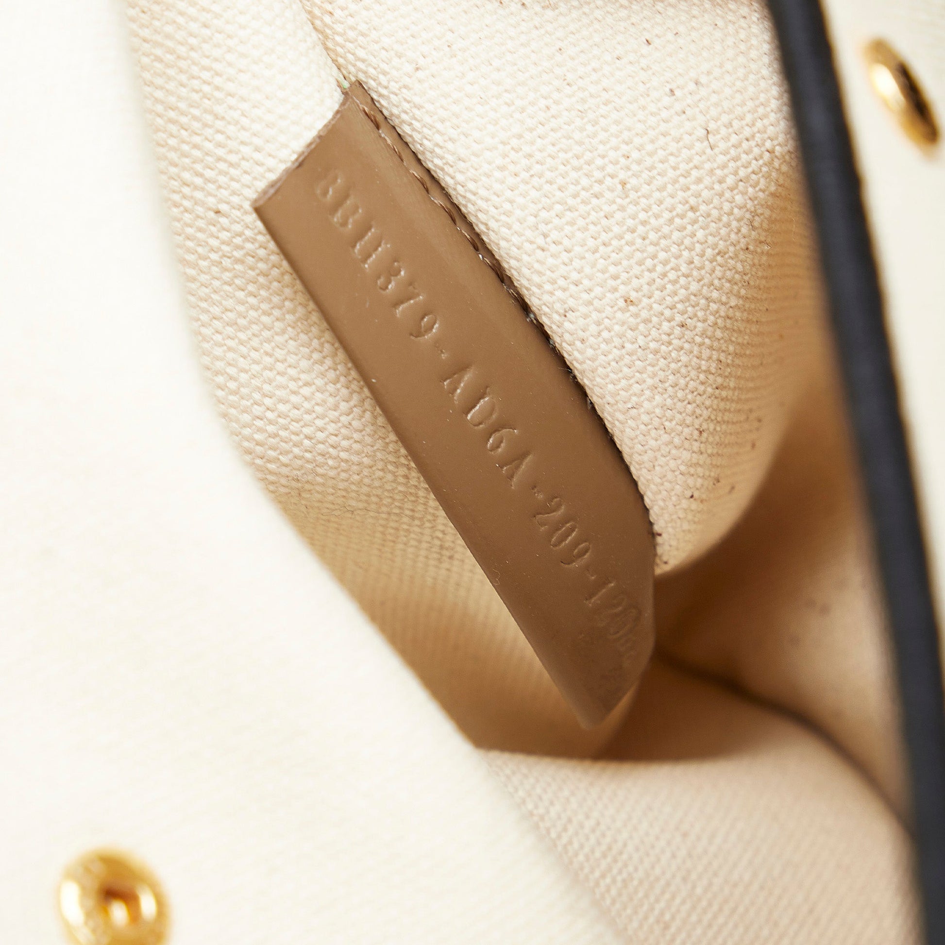 This tote bag features a canvas body, rolled handles, an open top, and an interior slip pocket. Comes with dust bag
