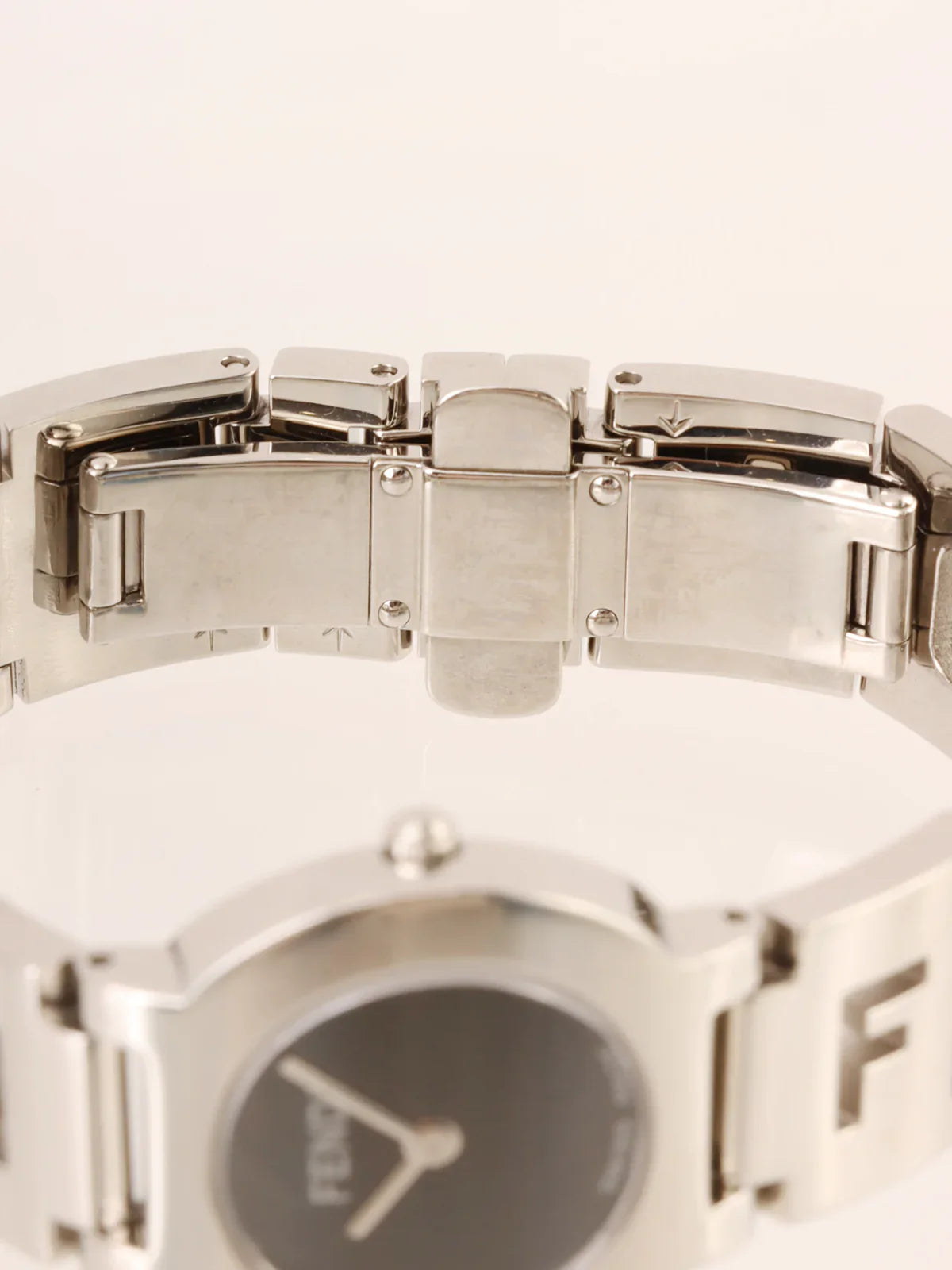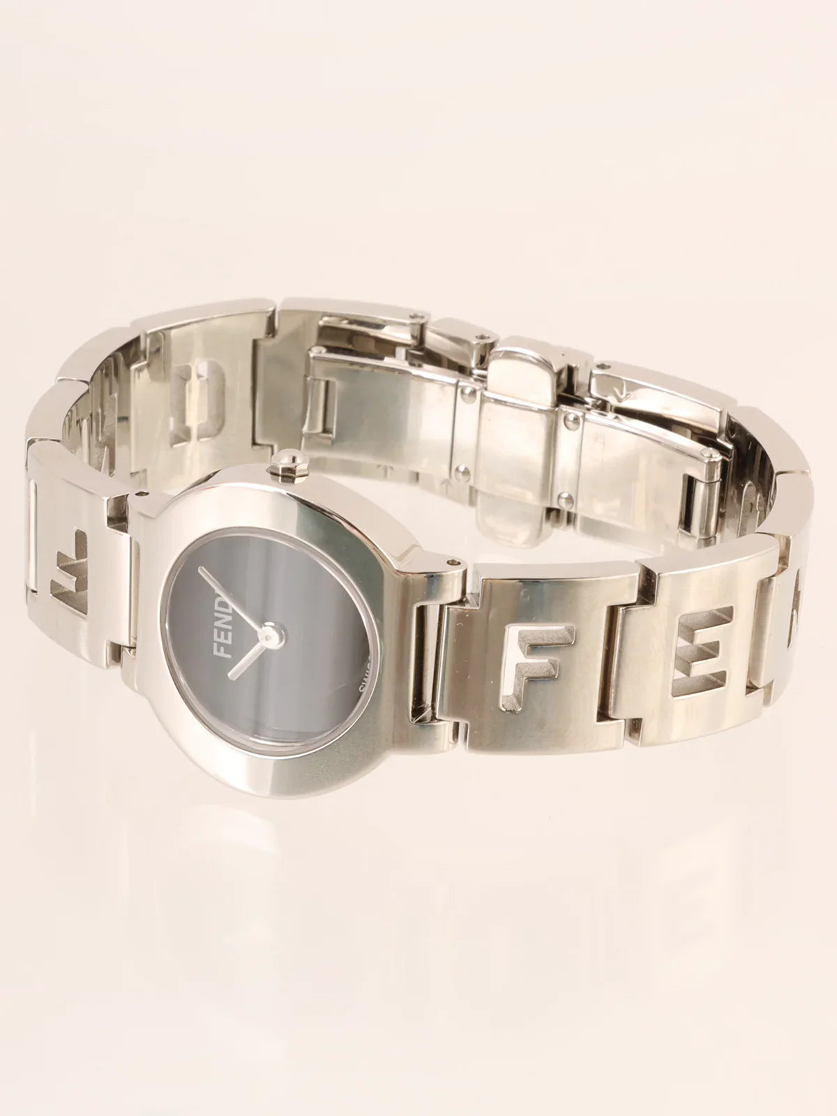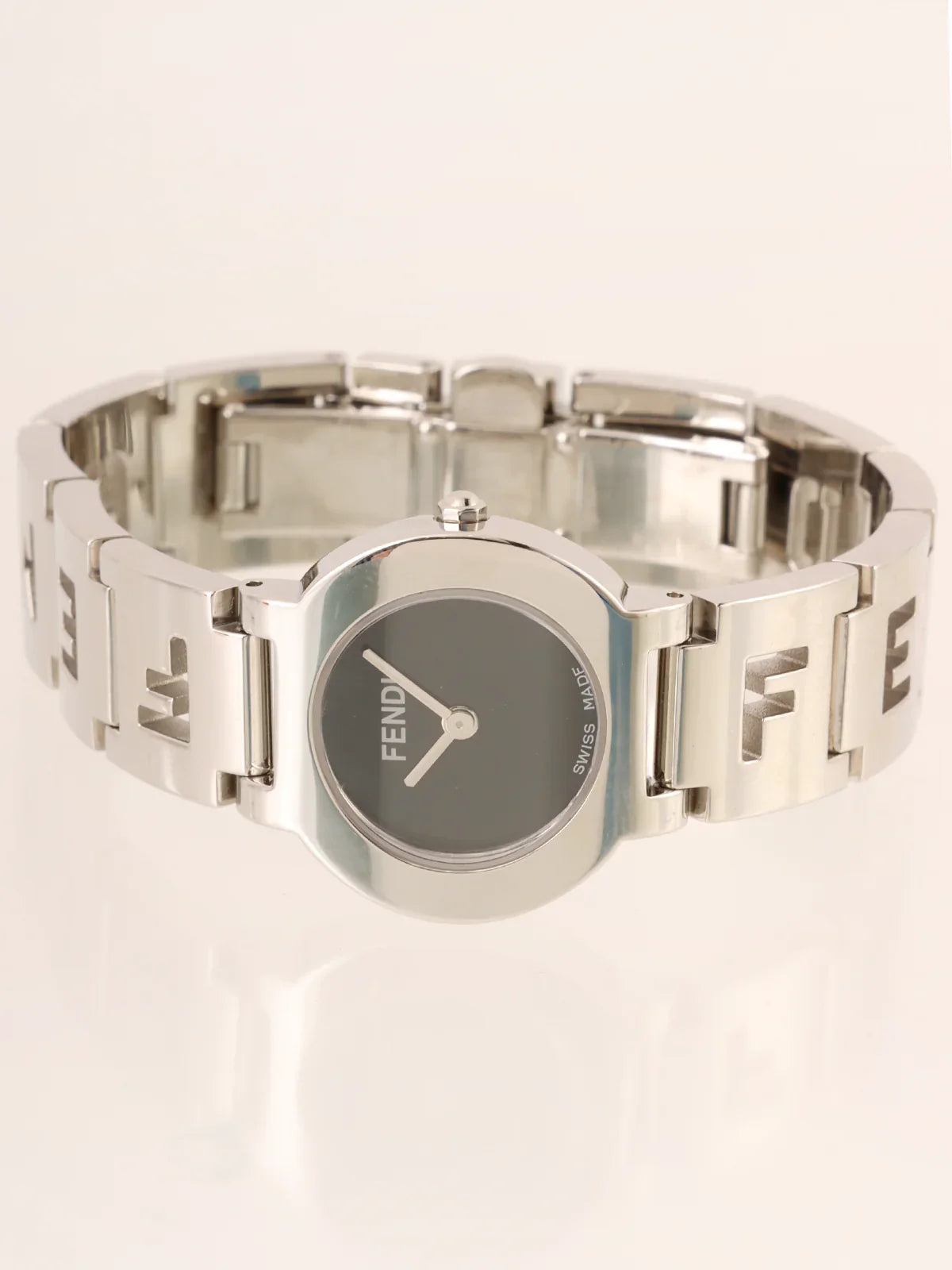FENDI Round Face Logo Bracelet Watch Silver/Black