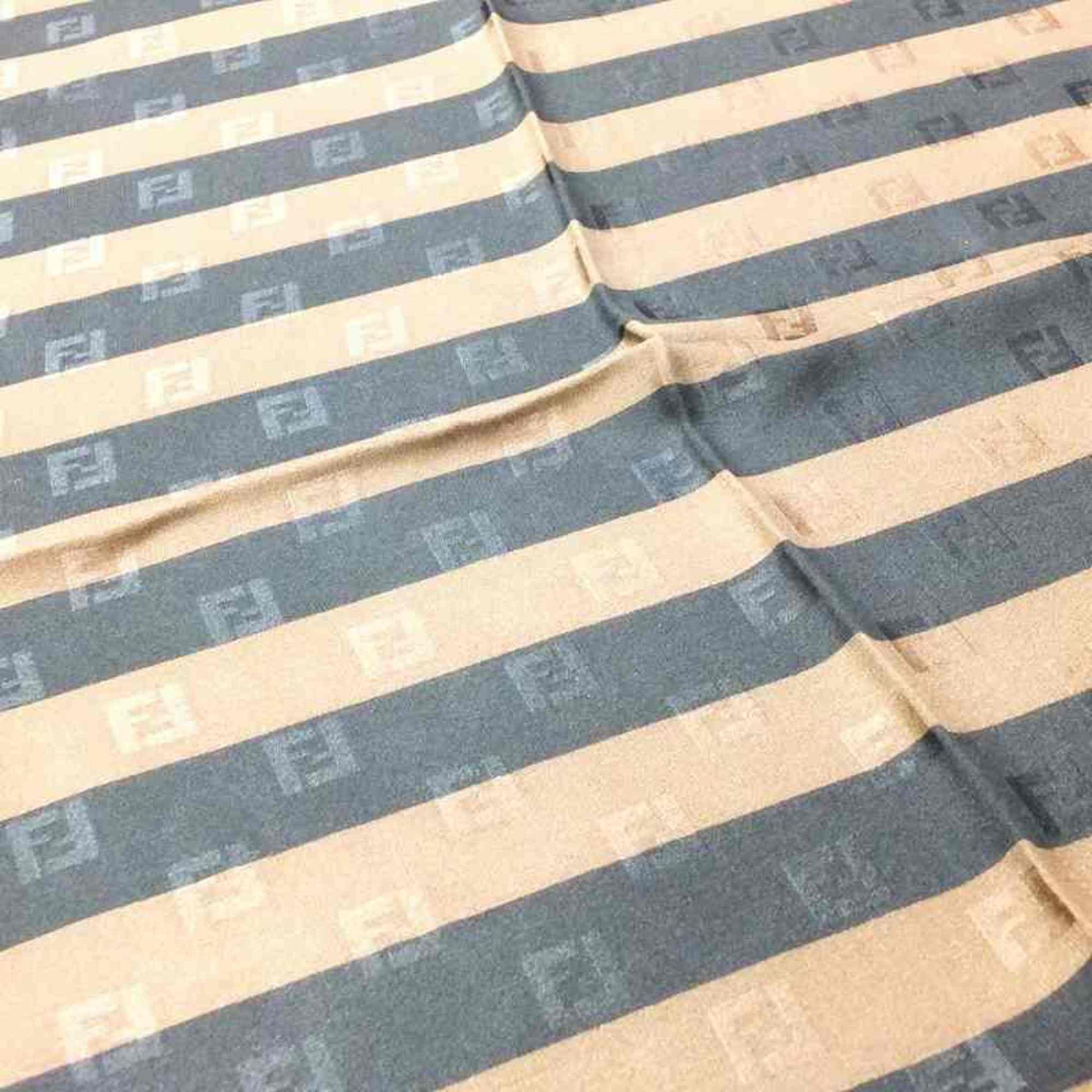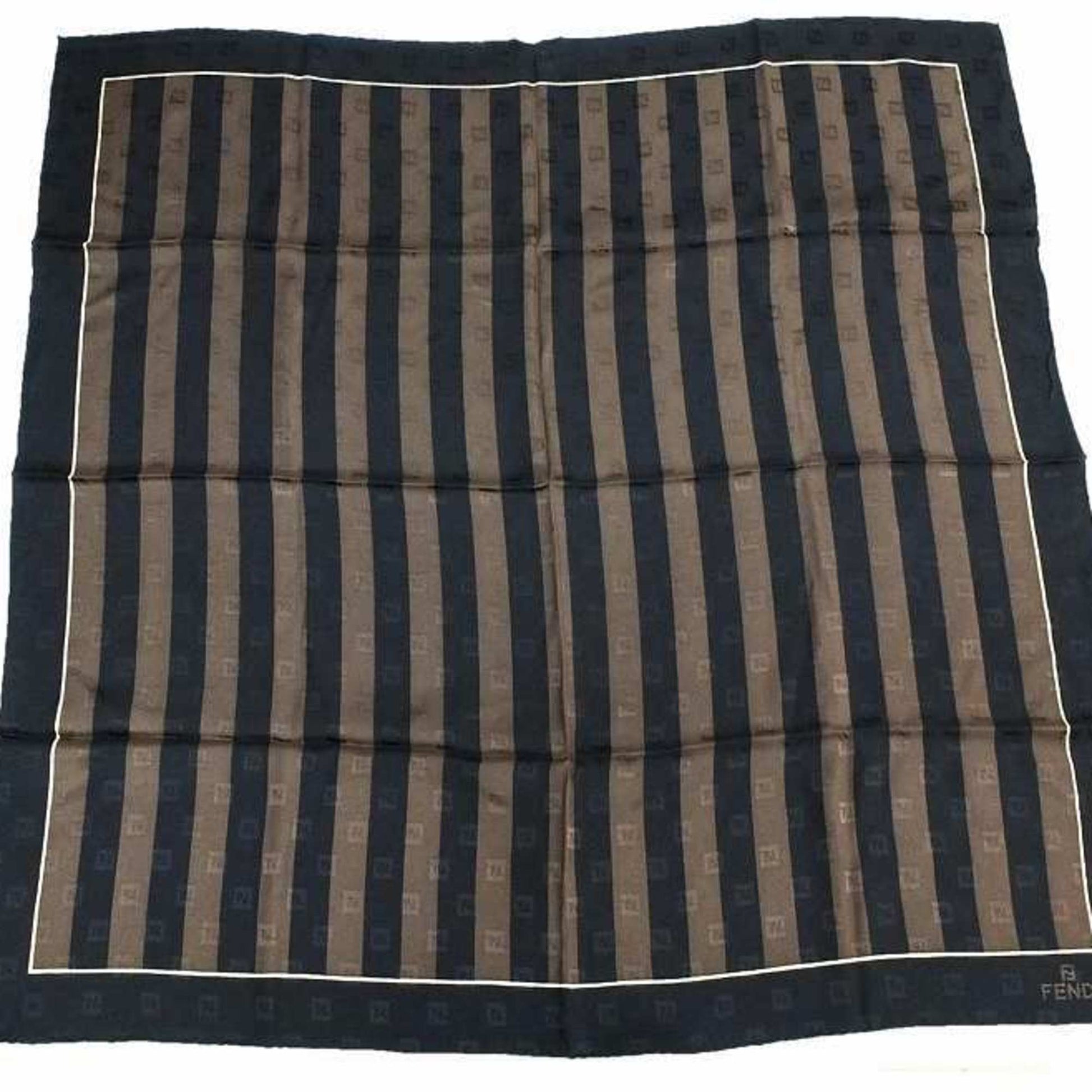 Fendi Scarf Brown Silk Border Stripe Dark Shawl Women's Fashion