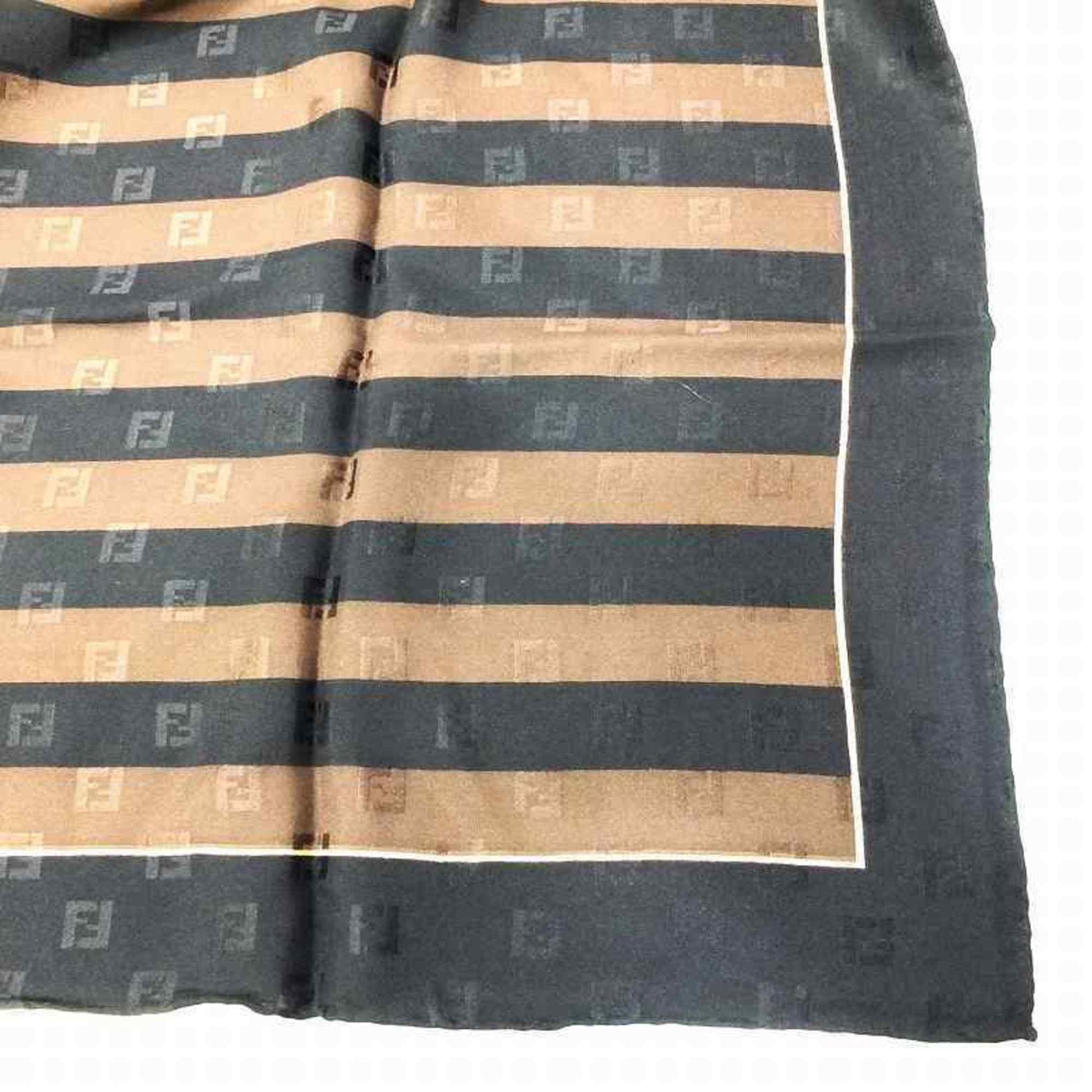 FENDI Scarf Brown Silk Border Stripe Dark Shawl Women's Fashion