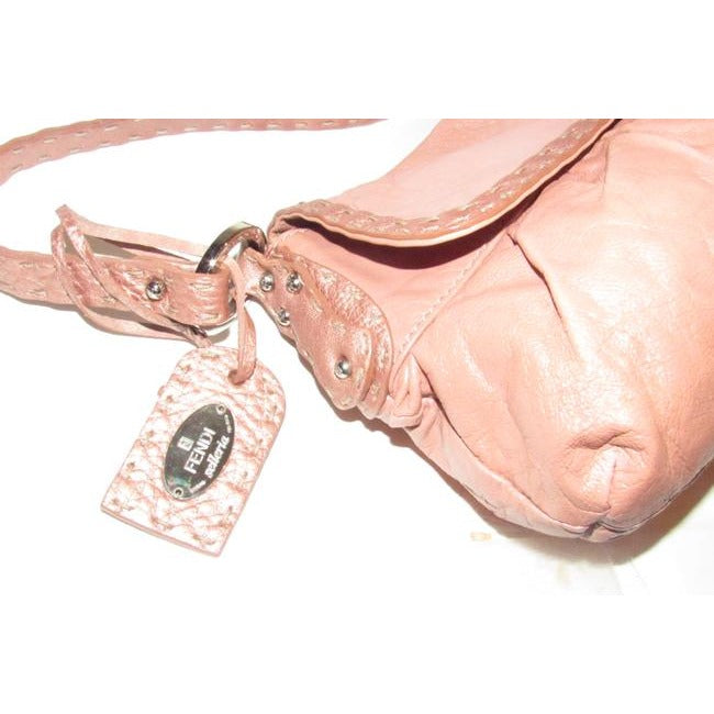 Fendi Selleria Chef Style Purse Metallic Pink Leather Shoulder Bag