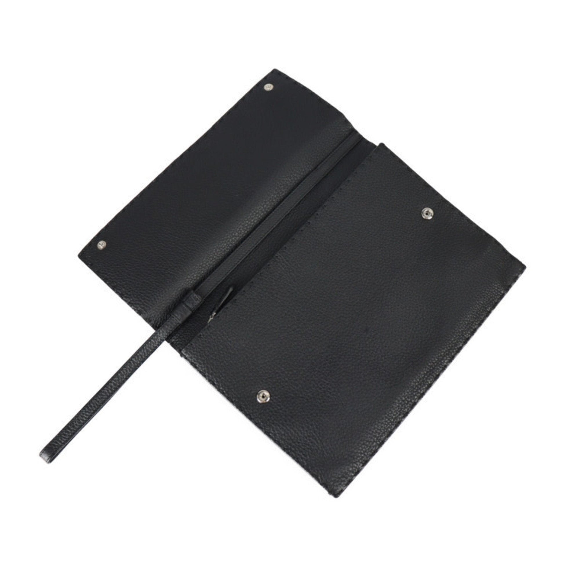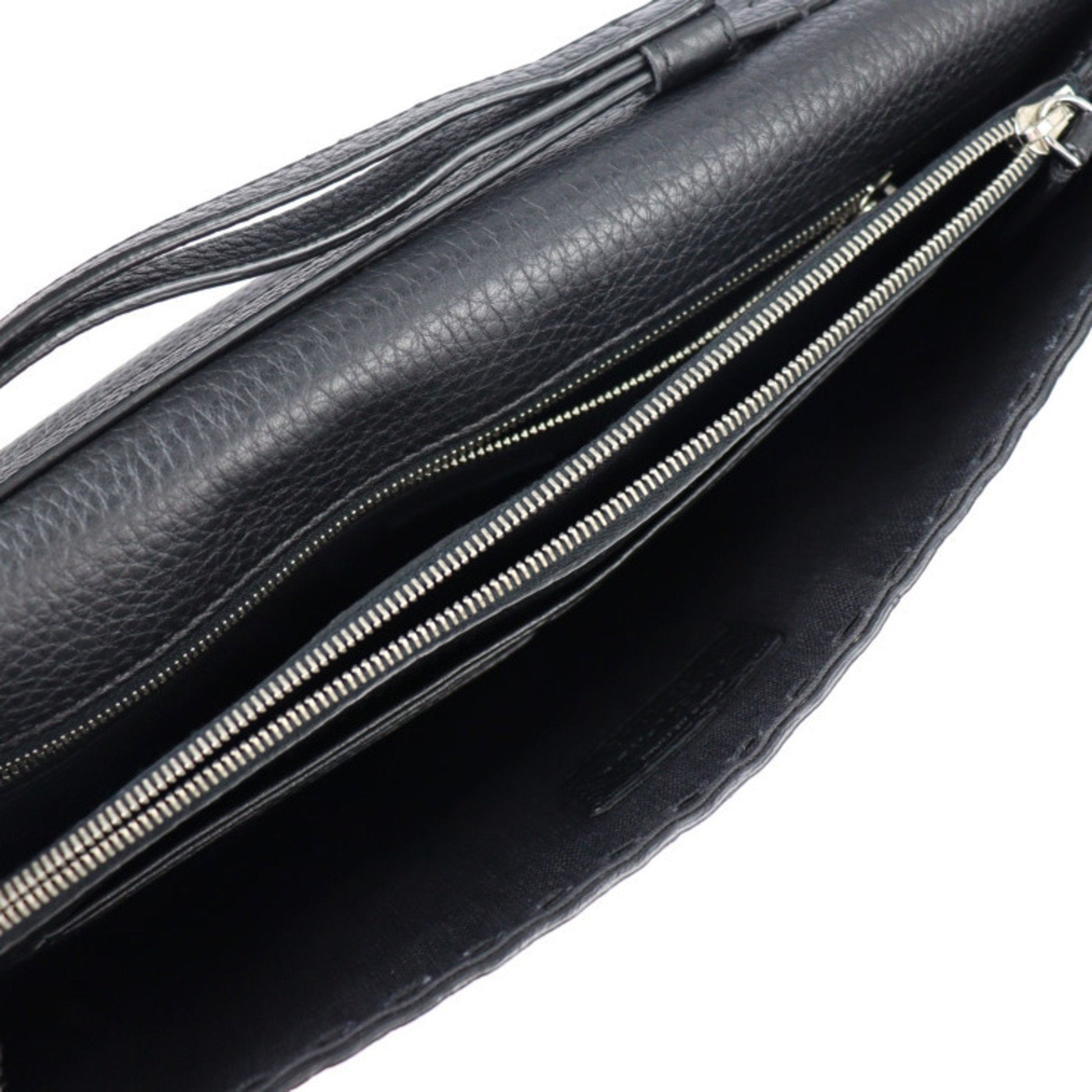 FENDI Selleria Clutch Bag 7VA376 Roman Leather Black Silver Hardware Wristlet Second Pouch