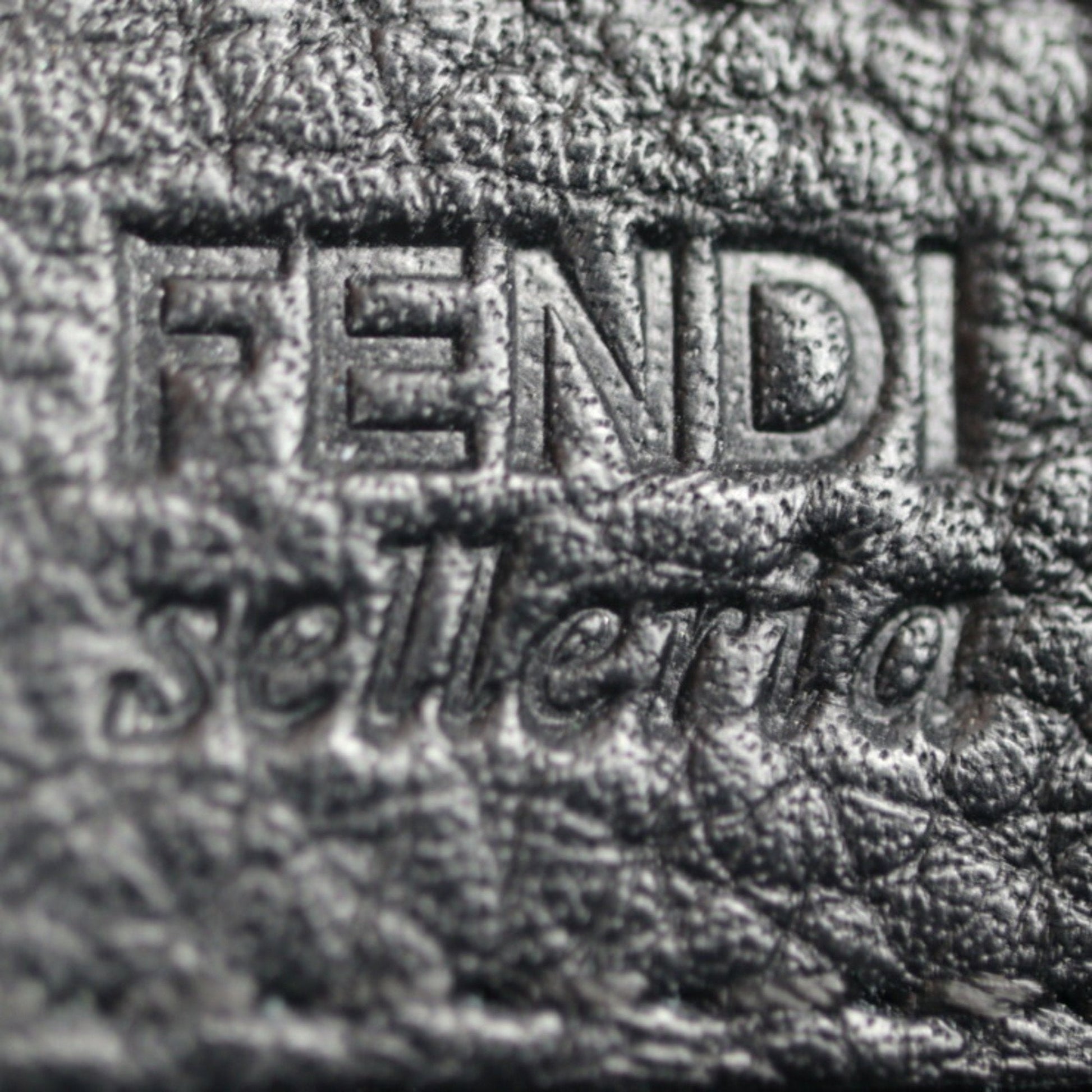 Fendi Selleria Clutch Bag 7VA376 Roman Leather Black Silver Hardware Wristlet Second Pouch