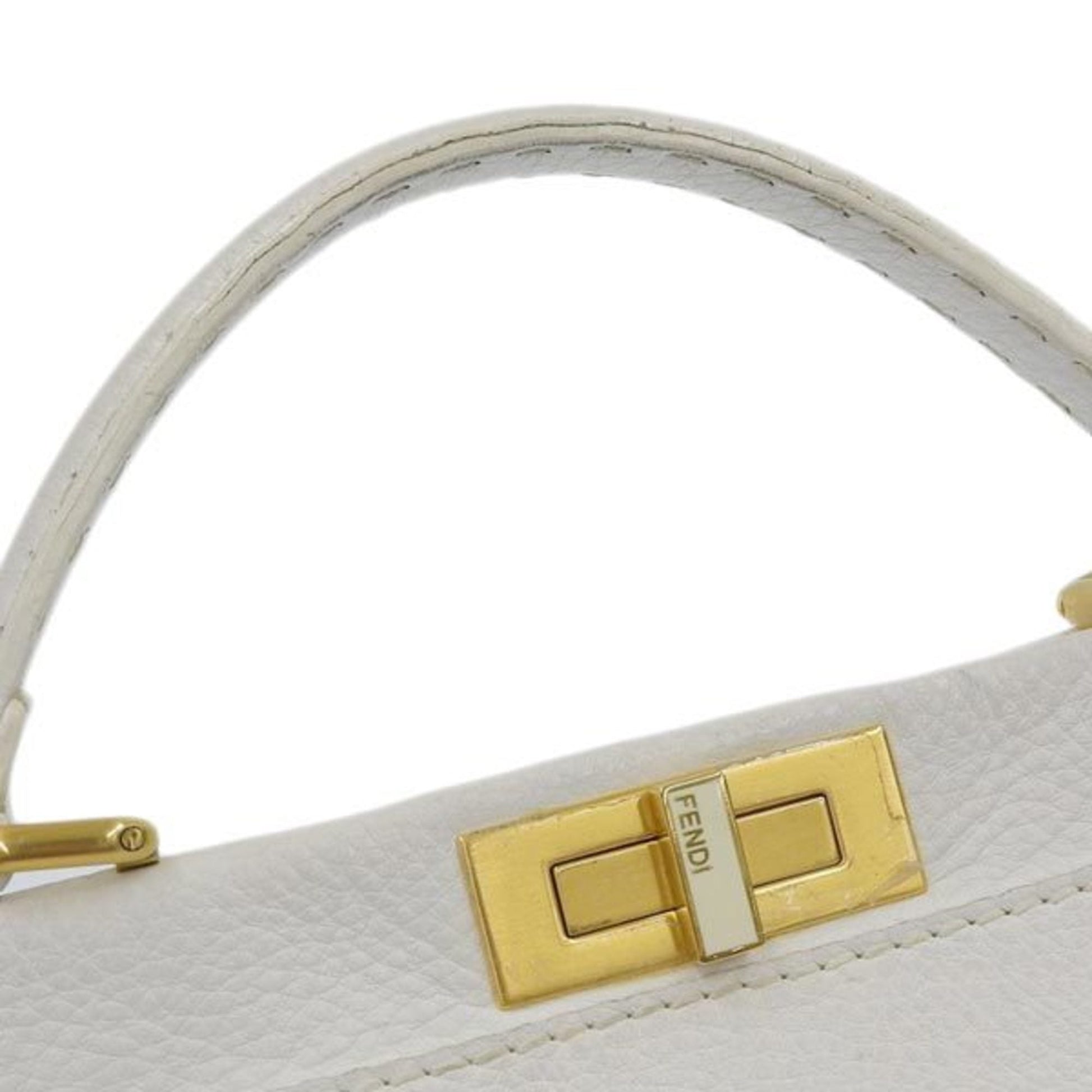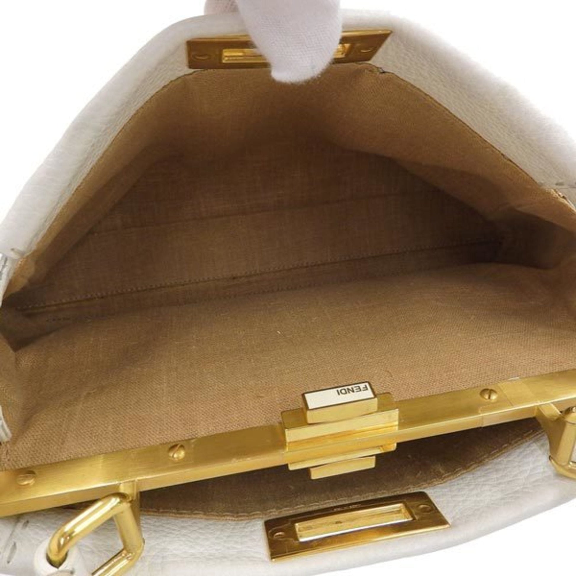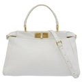 FENDI Selleria Leather Peekaboo Handbag 8BN211 White Ladies