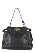 Fendi Selleria Mini Peekabo Black Leather Shoulder Bag