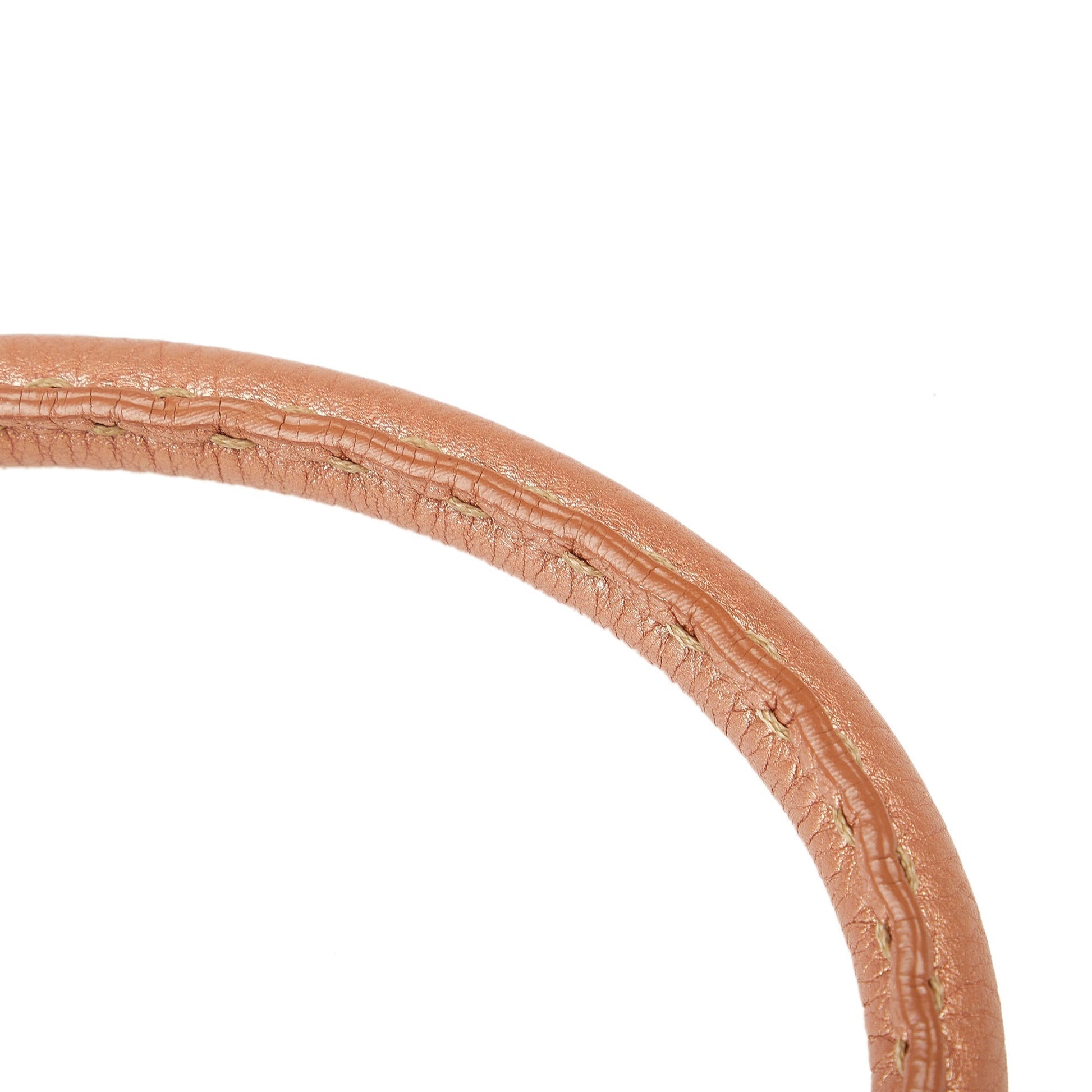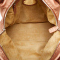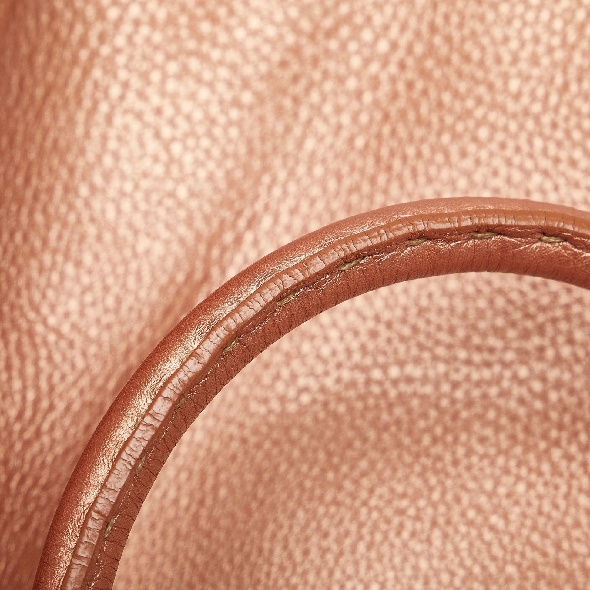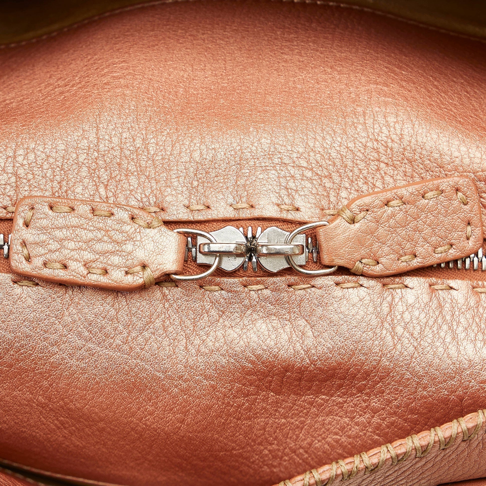 This tote bag features a leather body, rolled leather straps, an open top, and an interior zip pocket.