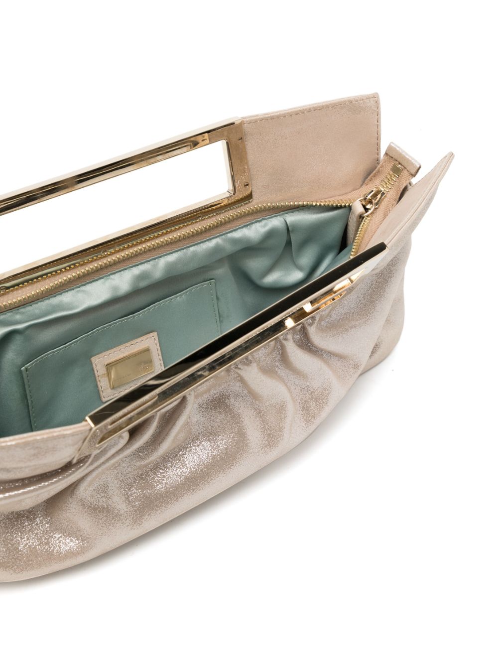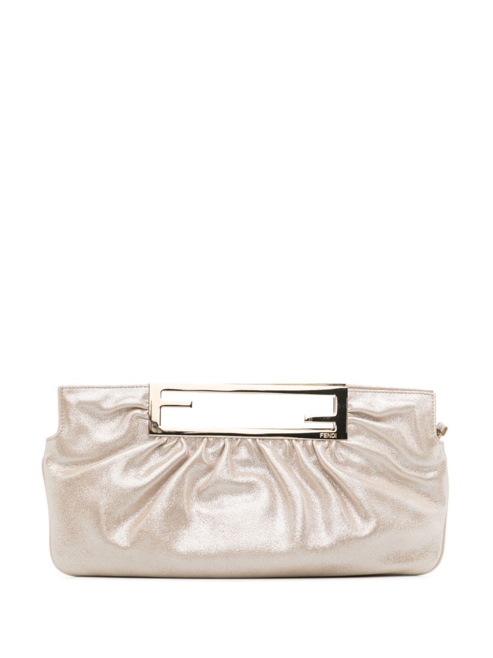 shiny gold-tone leather metallic finish gathered detailing FF logo plaque top zip fastening internal patch pocket internal logo plaque full lining gold-tone hardware rectangle body excellent condition with no signs of damage or use.