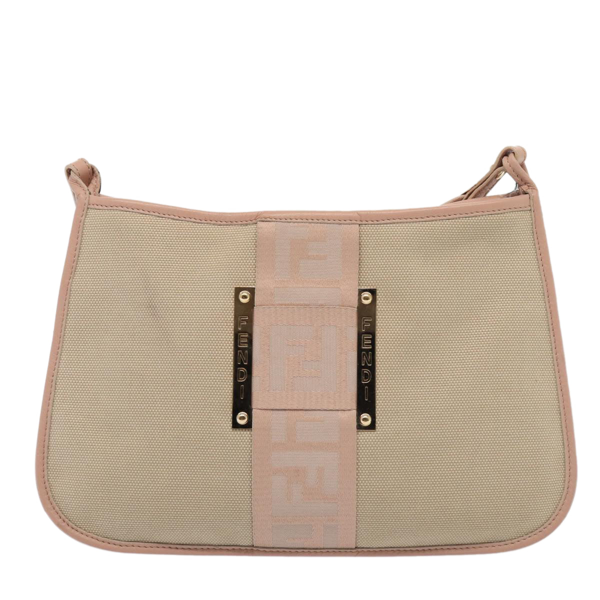 FENDI Shoulder Bag Canvas Beige Auth hk1442