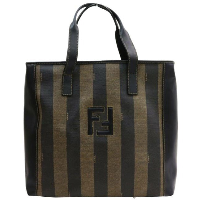 Fendi Shoulder Bag Canvasleather Bagshoulder Bagsatchel Pequin Stripebrown Coated Canvasleather Tote