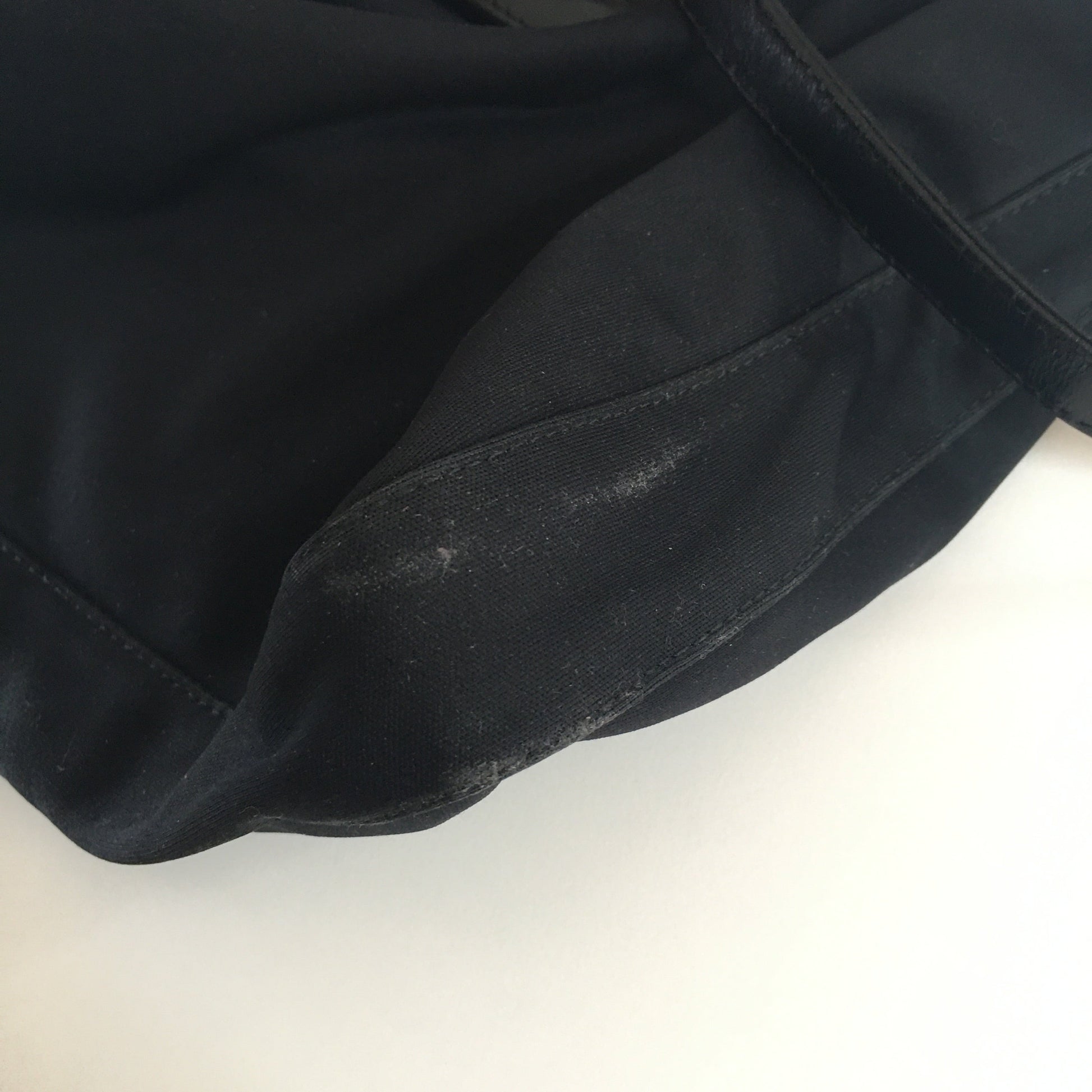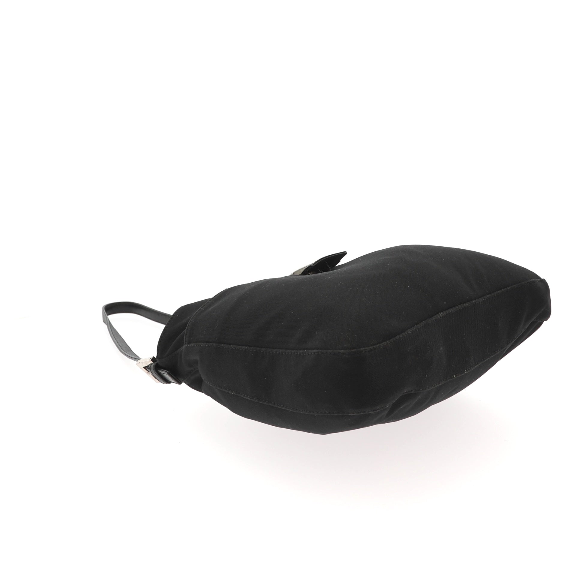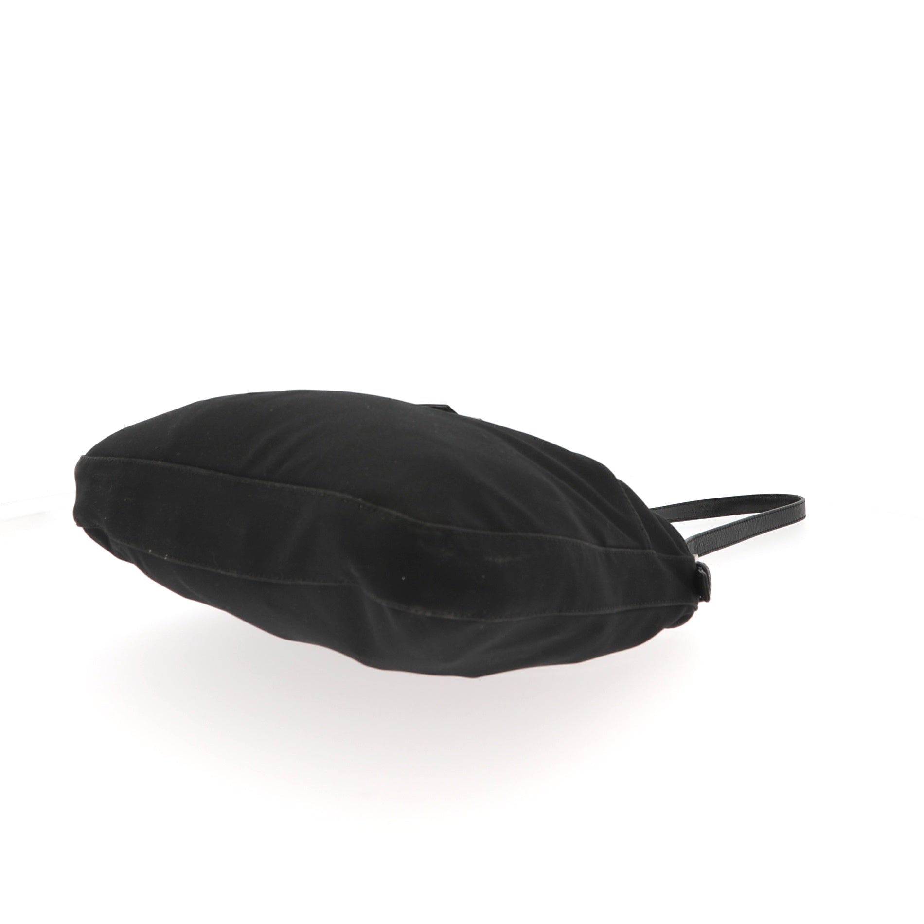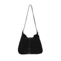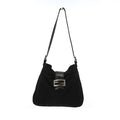 This lovely shoulder bag is crafted of jersey fabric in Black with silver hardware