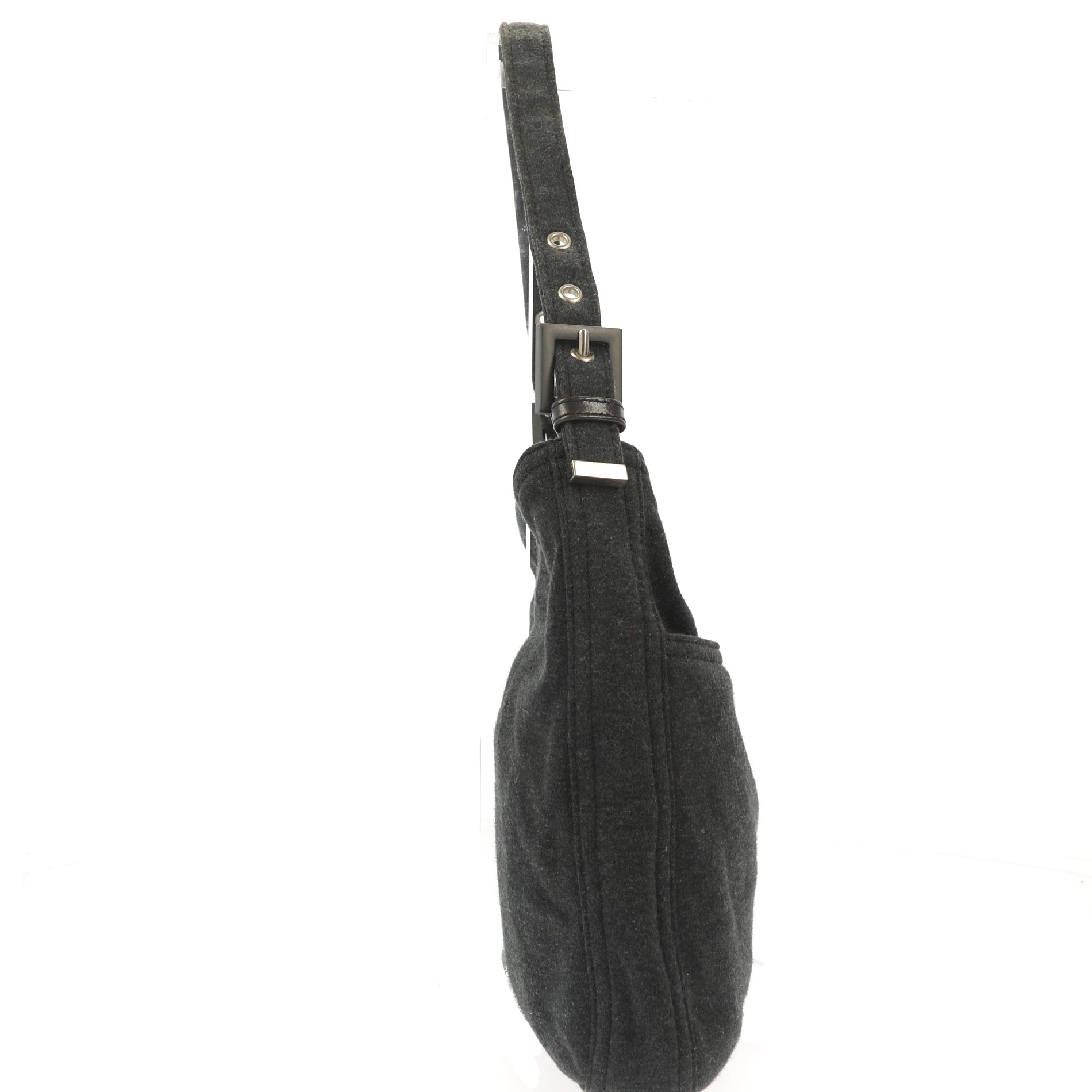 This super chic shoulder bag is beautifully crafted of sweatshirt fabric in Black (seems more a dark grey)