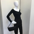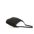 This stylish shoulder bag is beautifully crafted of fabric in Black with patent and leather details