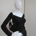 This elegantly structured shoulder bag is constructed jersey fabric in Black, with leather details and silver hardware