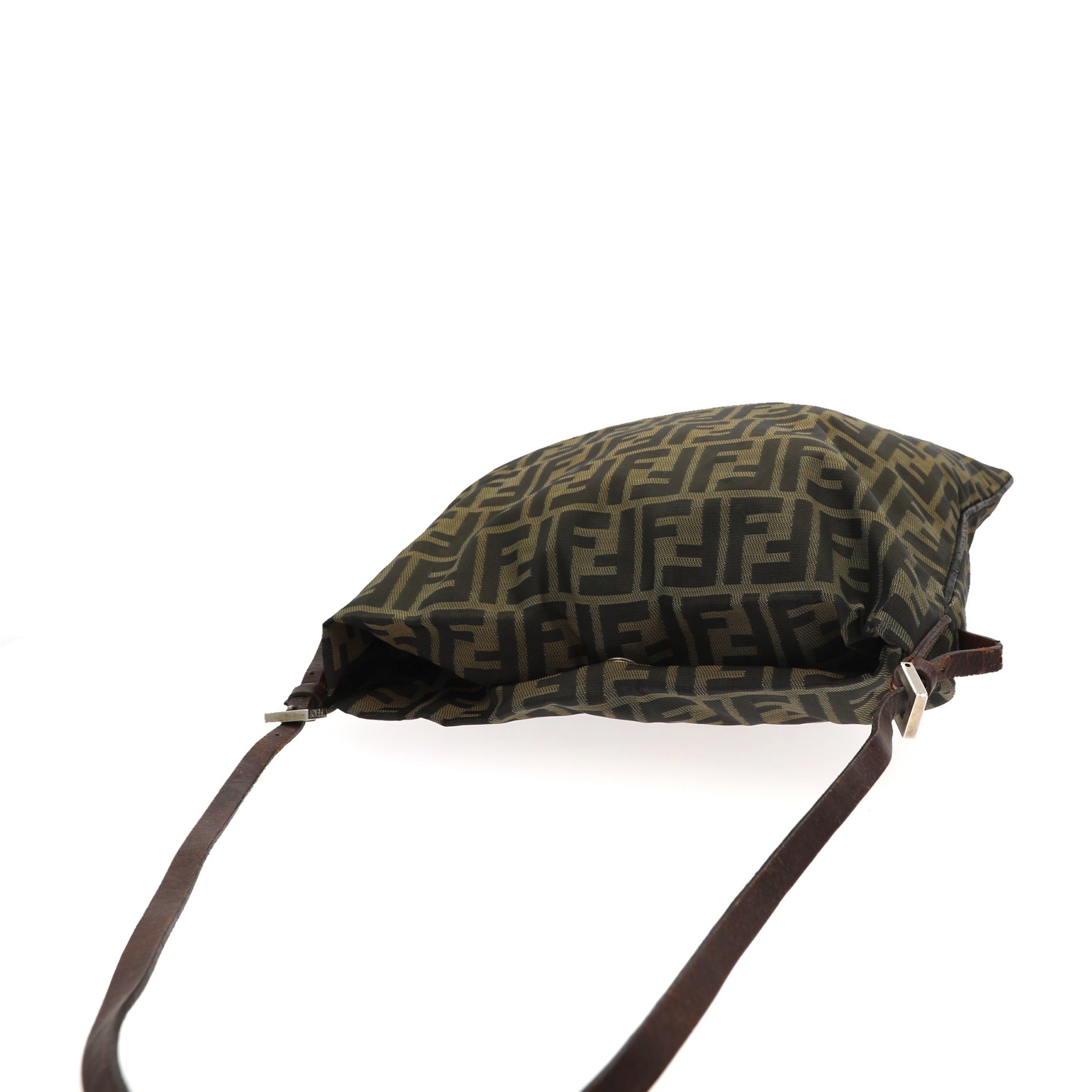This beautiful shoulder bag is crafted of Zucca fabric in Brown with leather details and silver hardware