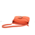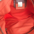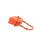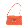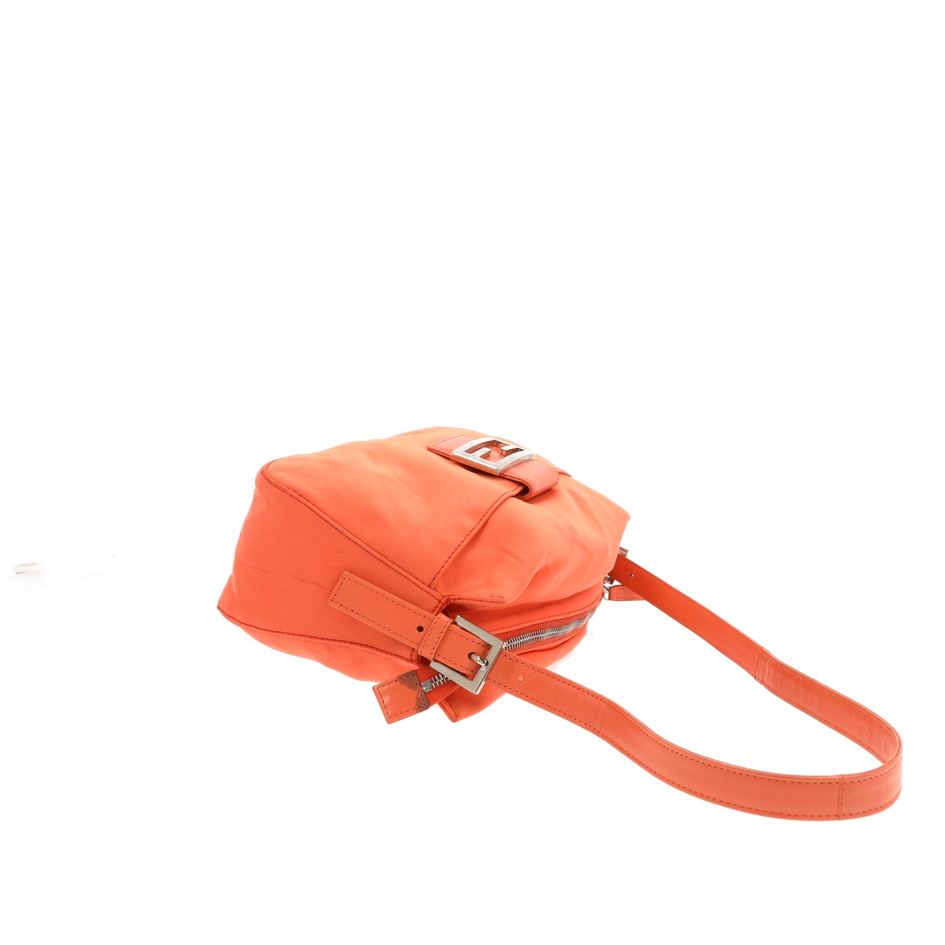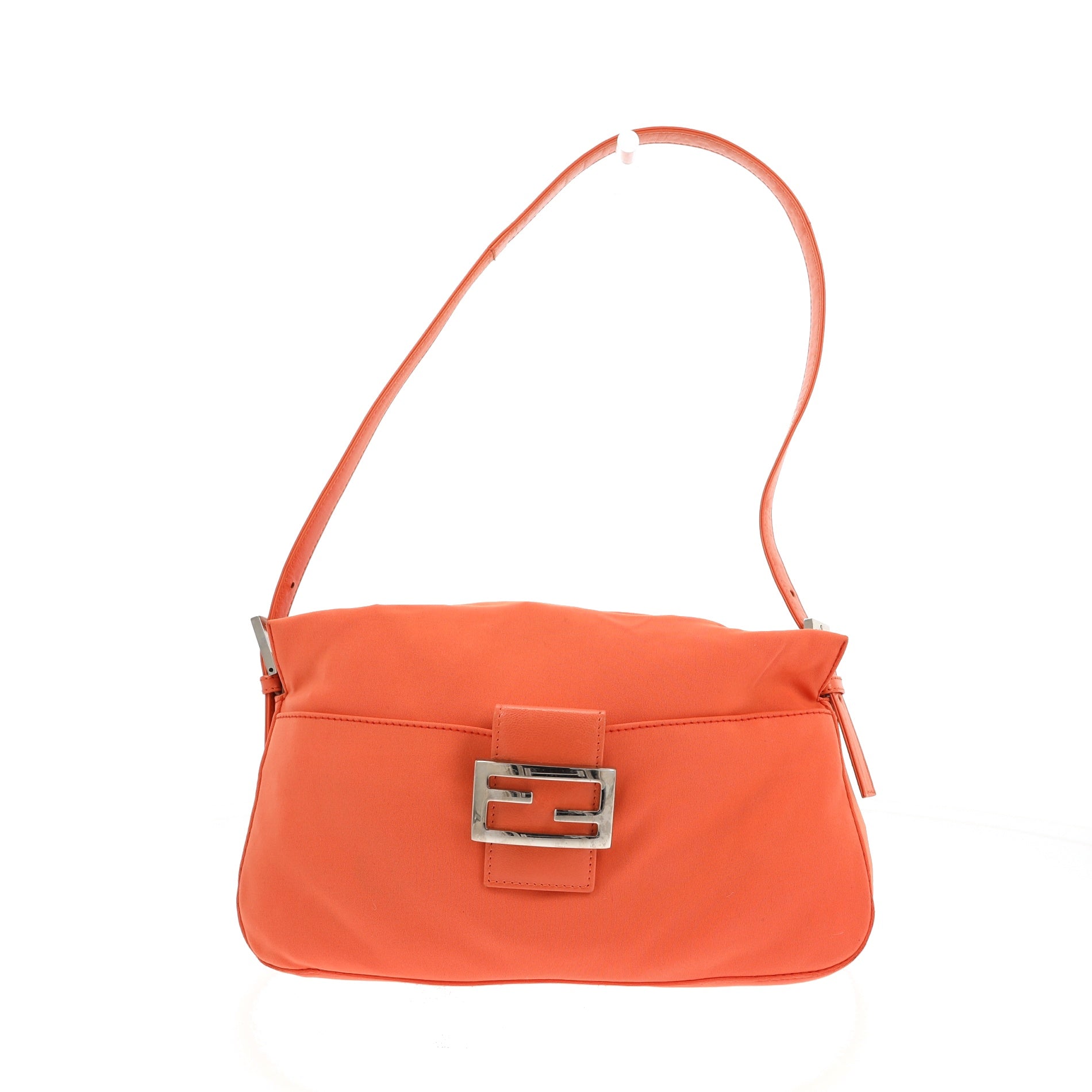 This beautiful shoulder bag is finely crafted of nylon fabric in Orange with silver color hardware
