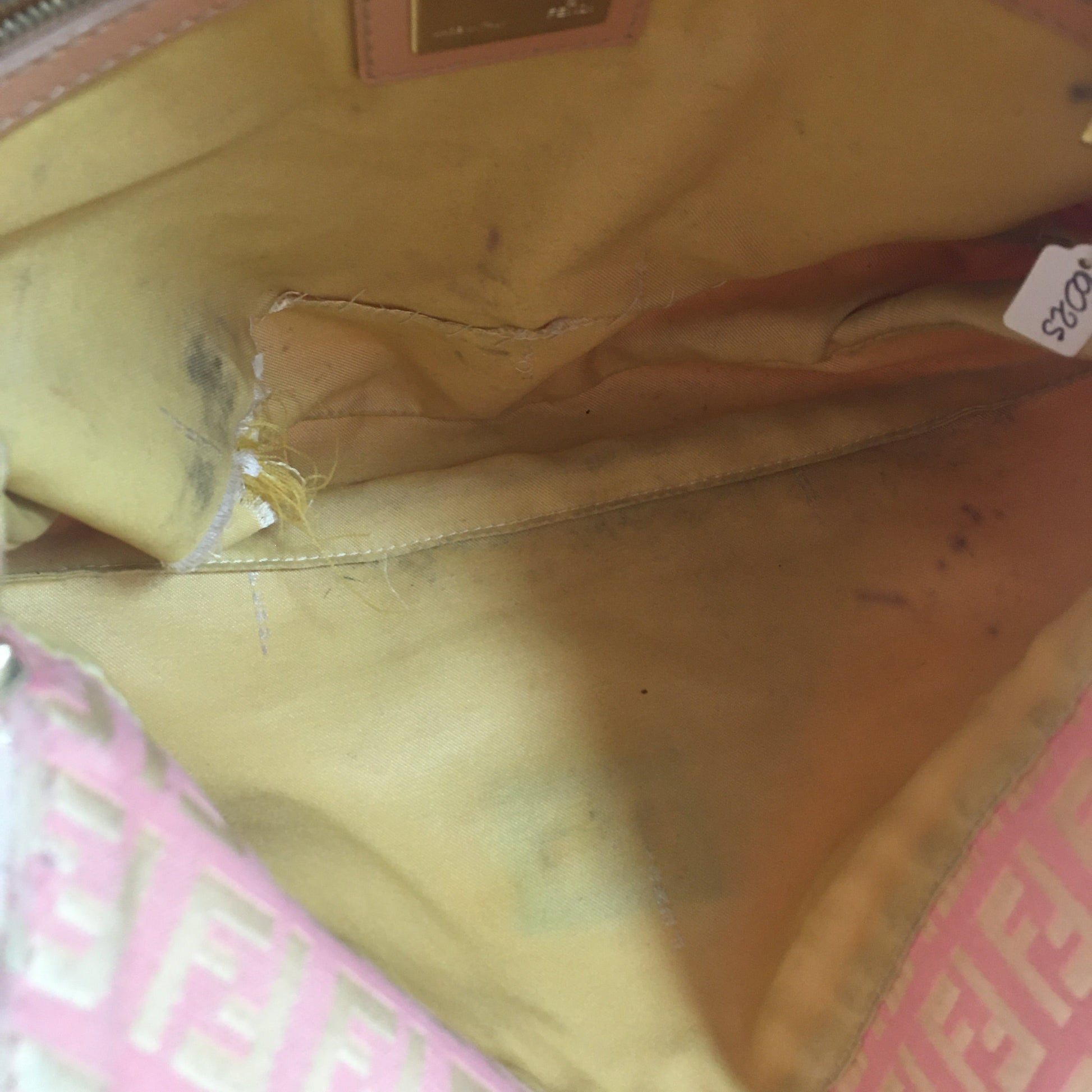 Inside, the yellow lining is and ripped on the bottom