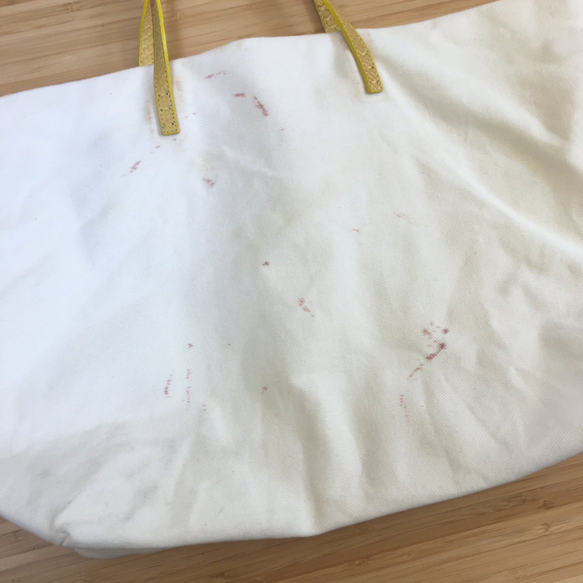 The bag is signed heavily by the previous use, the fabric is especially on the back and near the handles