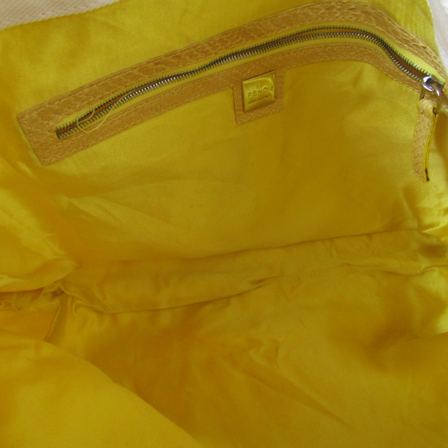 Fendi Shoulder bag In while (cream) fabric with yellow snake leather details.