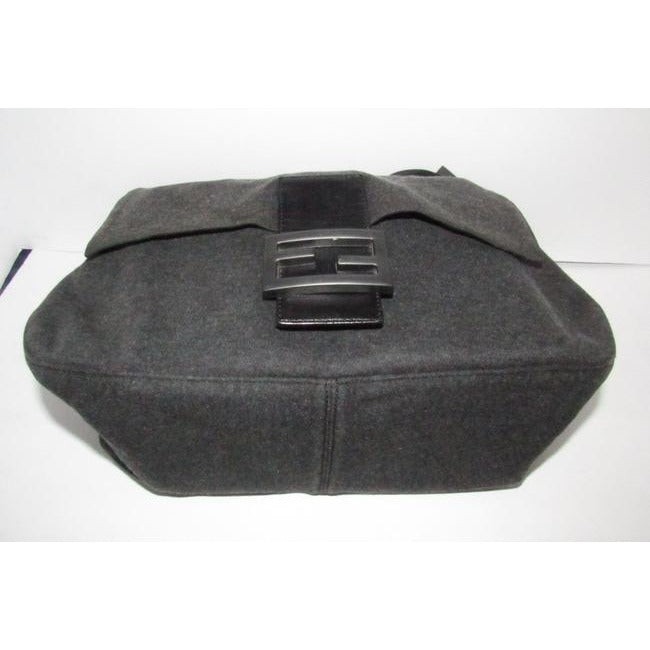 Fendi Shoulder Bag Jersey Mamma Forever Jerseypatent Charcoal Grayblack Wool And Leather Baguette