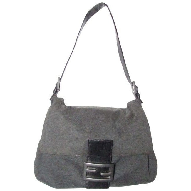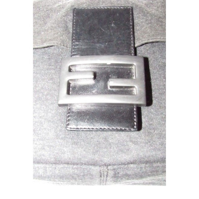 For sale is a Fendi, charcoal gray wool jersey and black leather, 'Mamma Forever', baguette style shoulder purse with the FF snap detail and dark grey heavy resin hardware! This is an edgy and unique take on the classic baguette style purse from Fendi with a lot of style in an unusual color and material!
