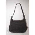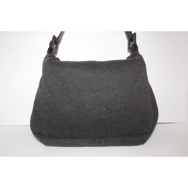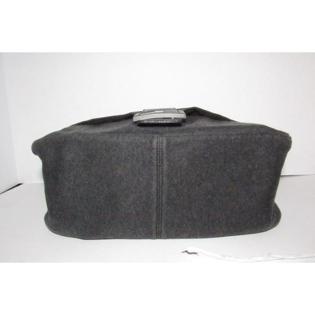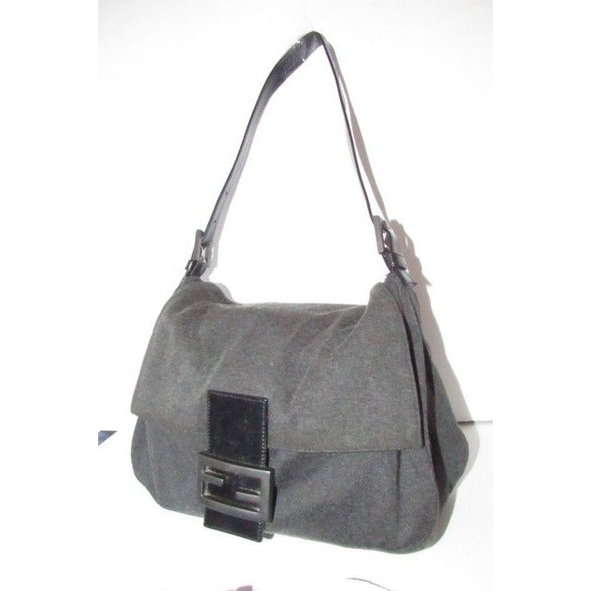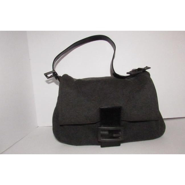This bag is made of charcoal gray wool jersey and black leather in the traditional, Fendi, baguette style with a bold FF logo accent at the snap closure and dark grey heavy resin accents. Inside, there is a main compartment and zip pocket to keep you organized. The purse is easily dressed up or down and a perfect everyday bag for any time of year!