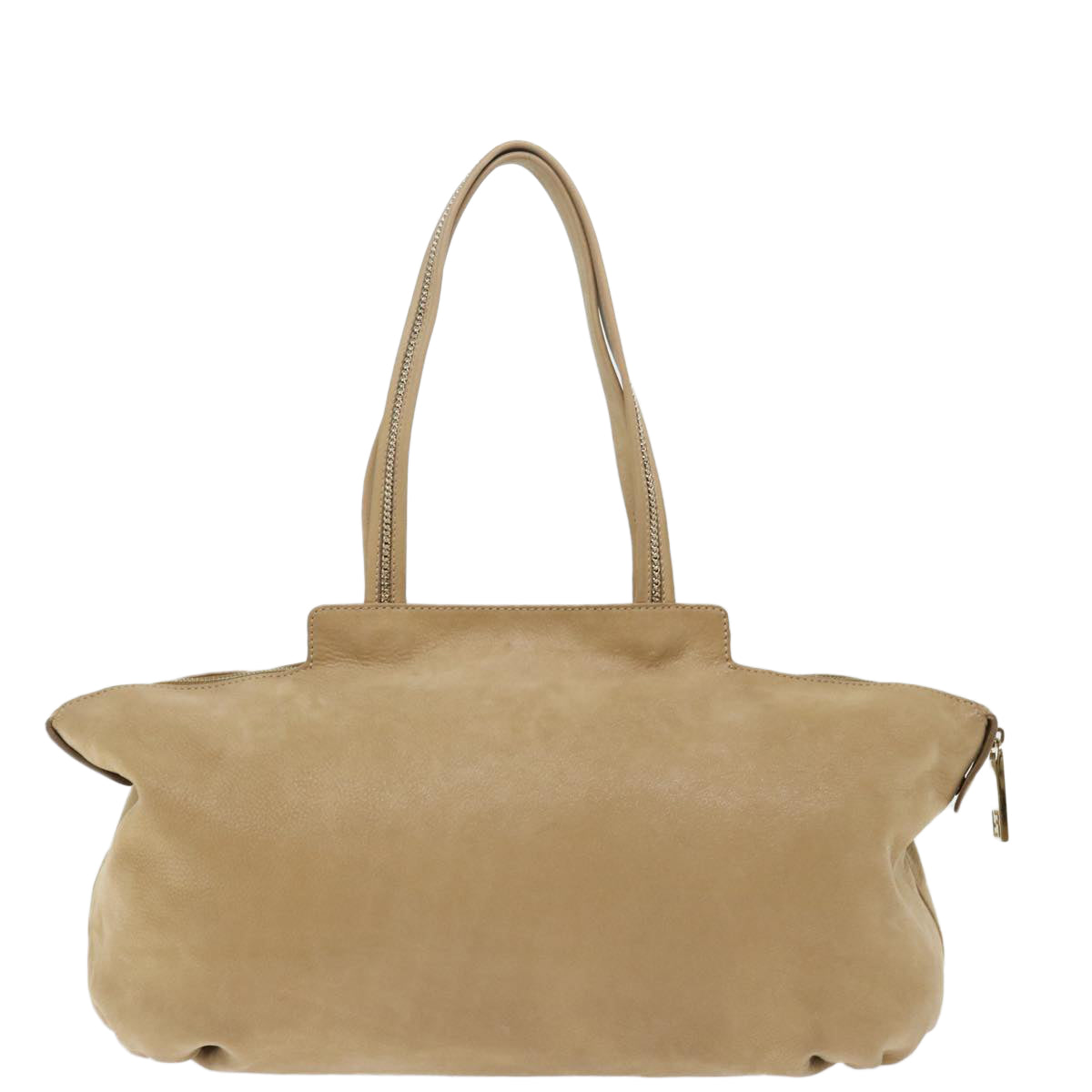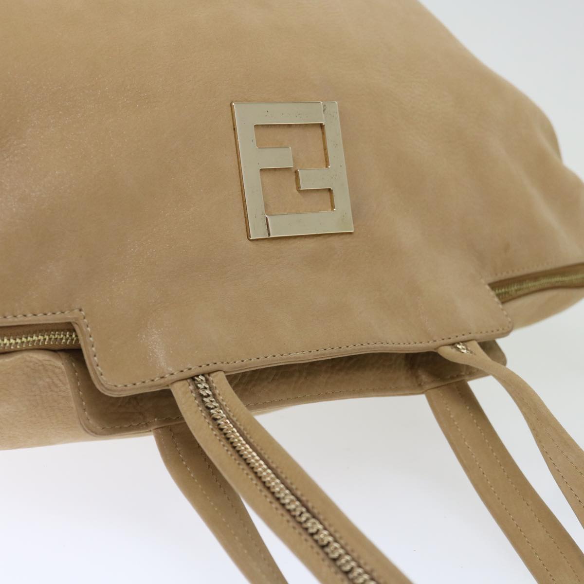 FENDI Shoulder Bag Leather Beige Auth bs13601