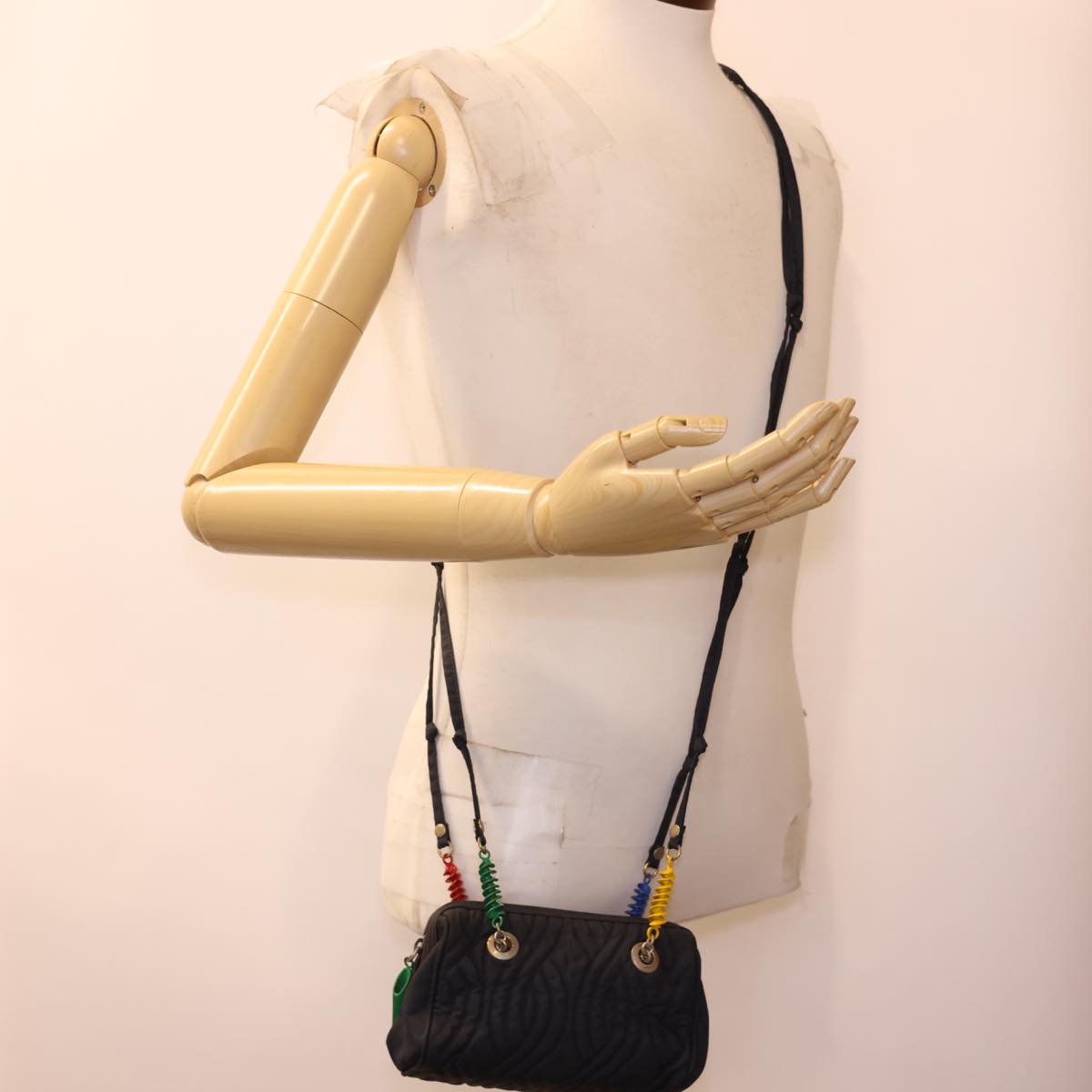 FENDI Shoulder Bag Nylon Black Multicolor Auth 40084